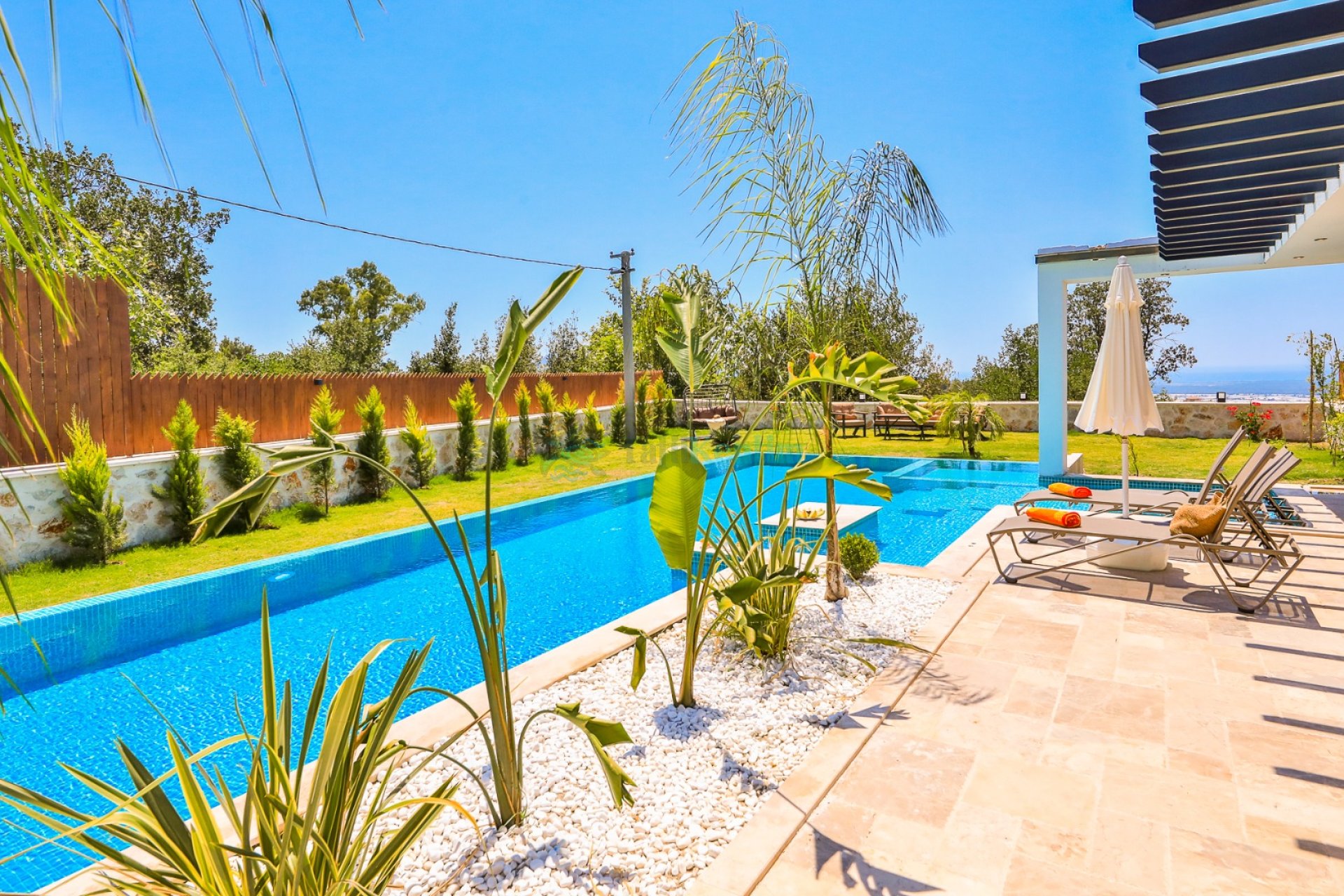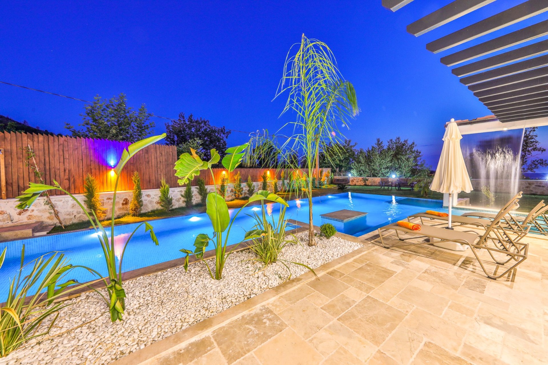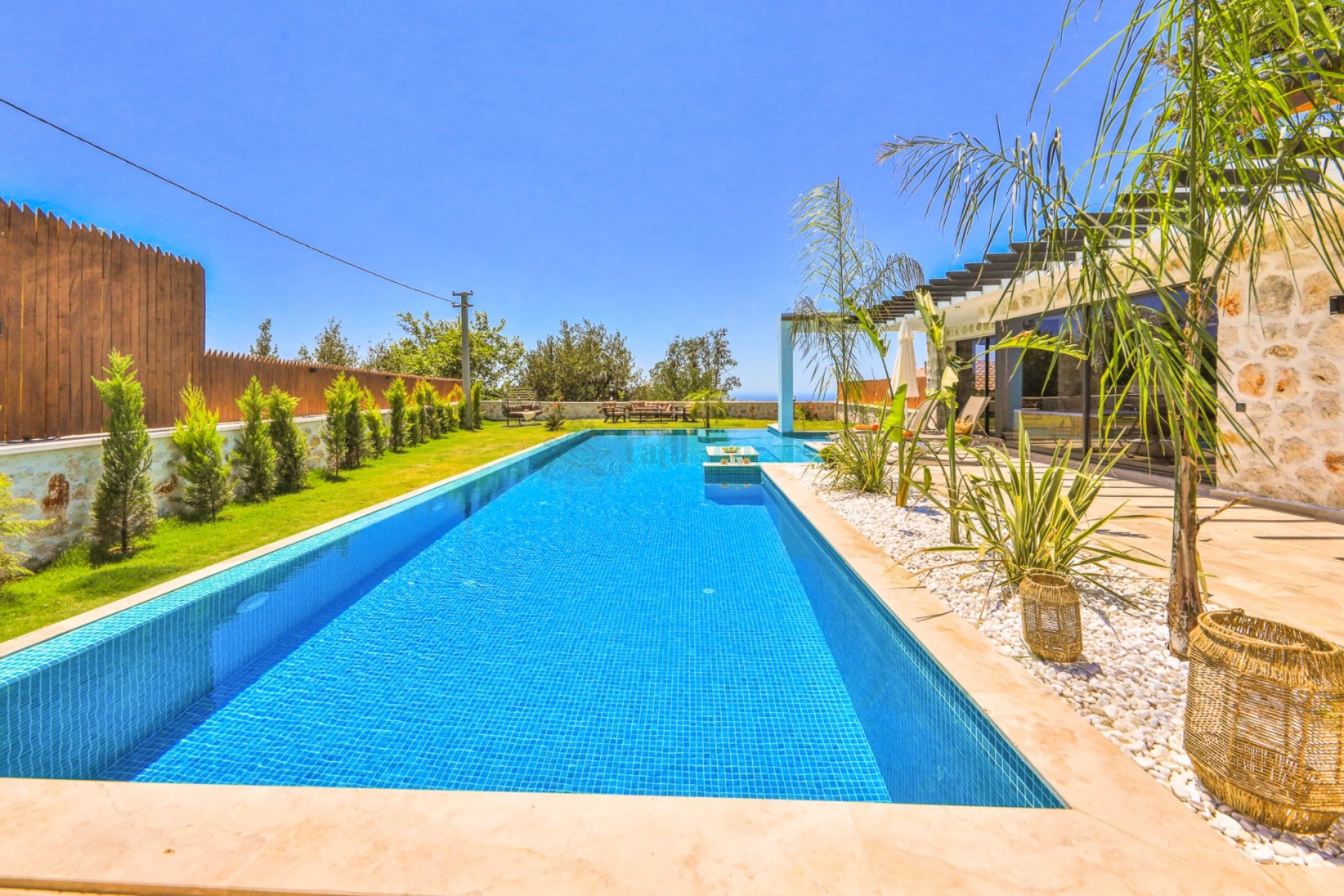 Villa Tan Kalkan Üzümlü, konfor ve huzuru bir arada sunan 6 kişilik villamız; 3 yatak odası ve 3 banyosu ile geniş aileler ve arkadaş grupları için ideal bir konaklama imkanı sunmaktadır. Muhafazakar konseptte tasarlanan villamızın tamamen korunaklı bahçe alanında size özel yüzme havuzu bulunmaktadır. Bahçede ayrıca salıncak, geniş yemek masası, konforlu oturma grubu ve çocuklar için özel çocuk havuzu yer almaktadır. Sevdiklerinizle keyifli ve güvenli vakit geçirebileceğiniz ferah bir yaşam alanı sunulmuştur. Villamızda dört mevsim konfor için sauna, kapalı yüzme havuzu ve hamam bulunmaktadır. Günün yorgunluğunu atabileceğiniz bu özel alanlar sayesinde tatiliniz boyunca hem dinlenebilir hem de yenilenebilirsiniz. Yatak odalarından birinde bulunan jakuzi ise konforunuzu bir üst seviyeye taşımaktadır. Şık ve modern tasarımıyla öne çıkan villamızda ihtiyacınız olan tüm detaylar düşünülmüştür.