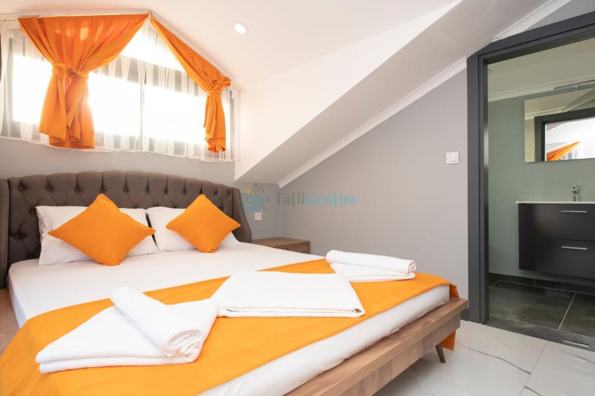 3. Yatak Odası : Çift kişilik bir adet yatak, elbise dolabı, komodin, klima, özel banyo ve tuvalet bulunmaktadır.