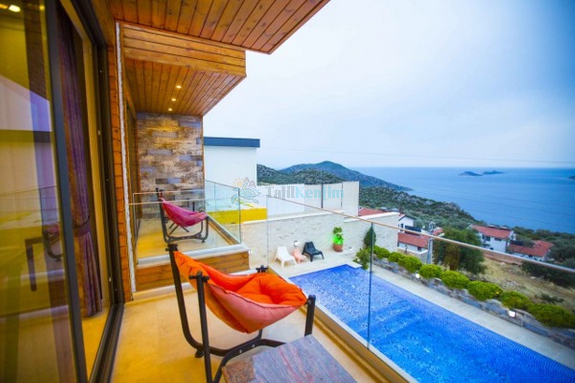 Kaş Kalkan Mahallesinde Deniz Manzarasına Sahip Korunaklı Özel Havuzlu Kiralik Tatil Villası