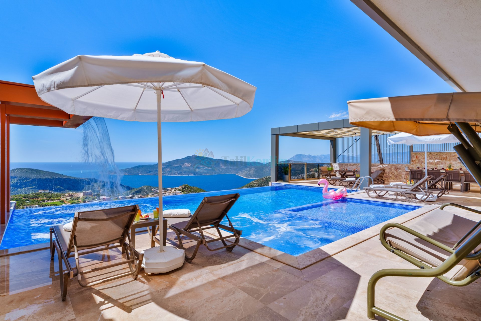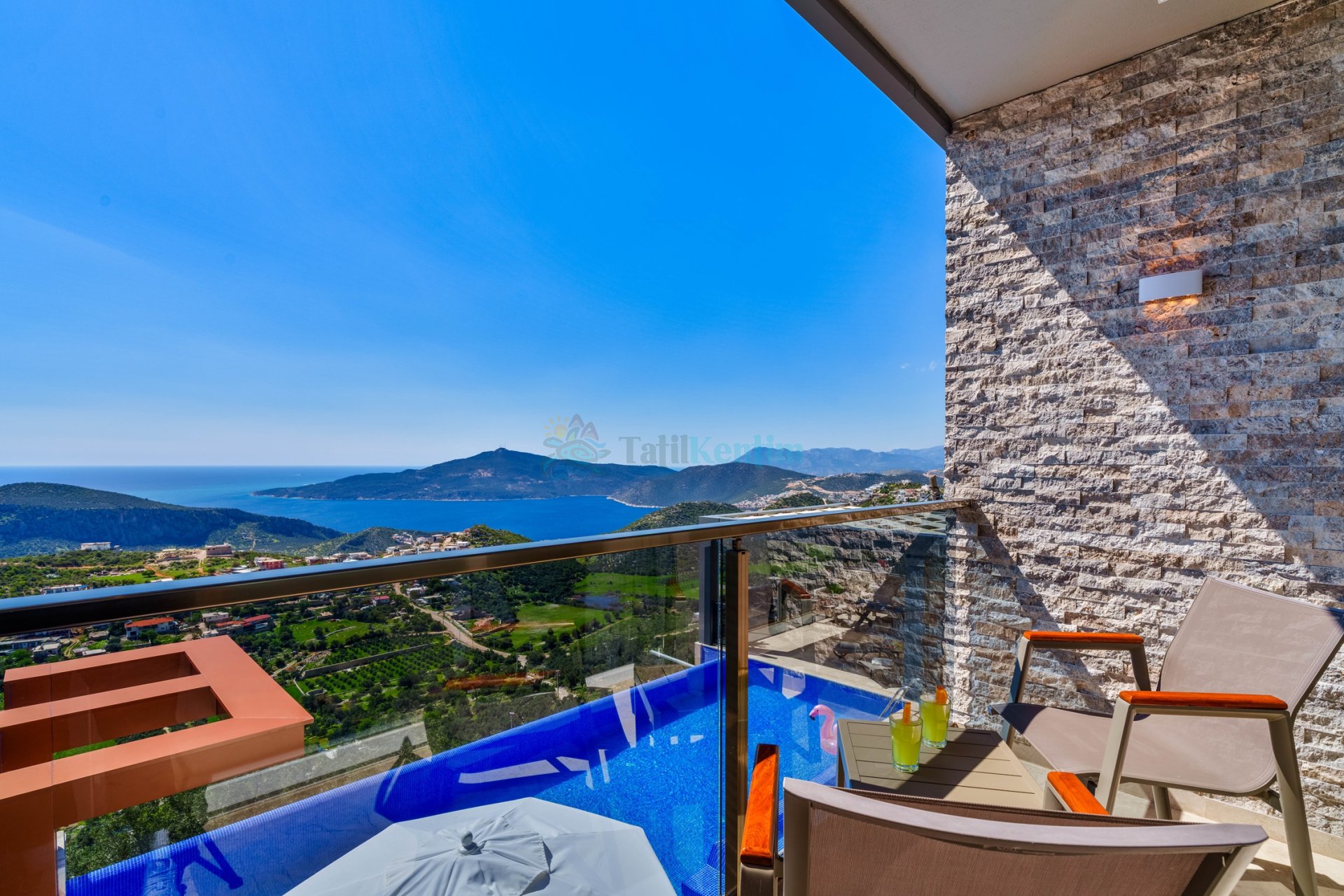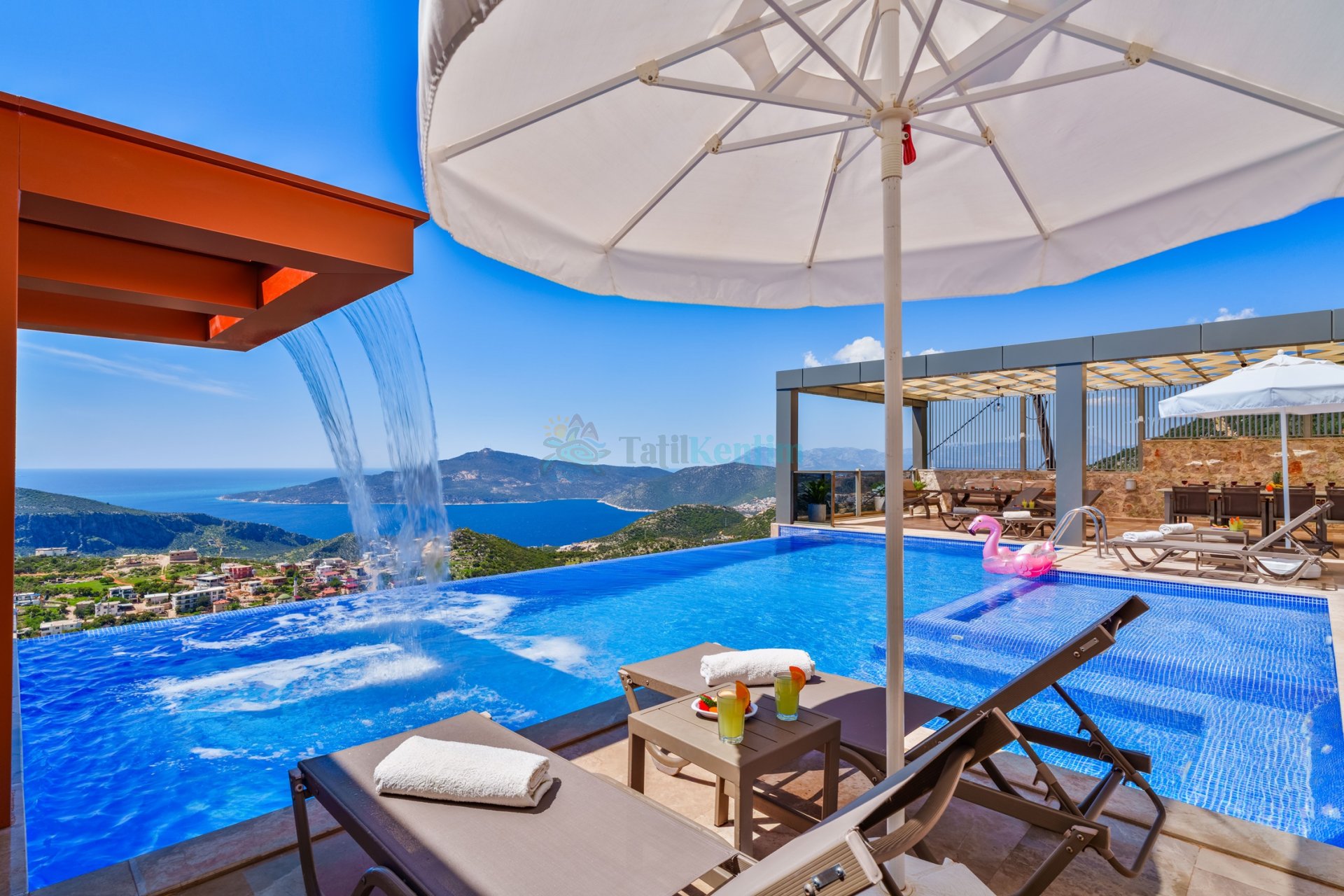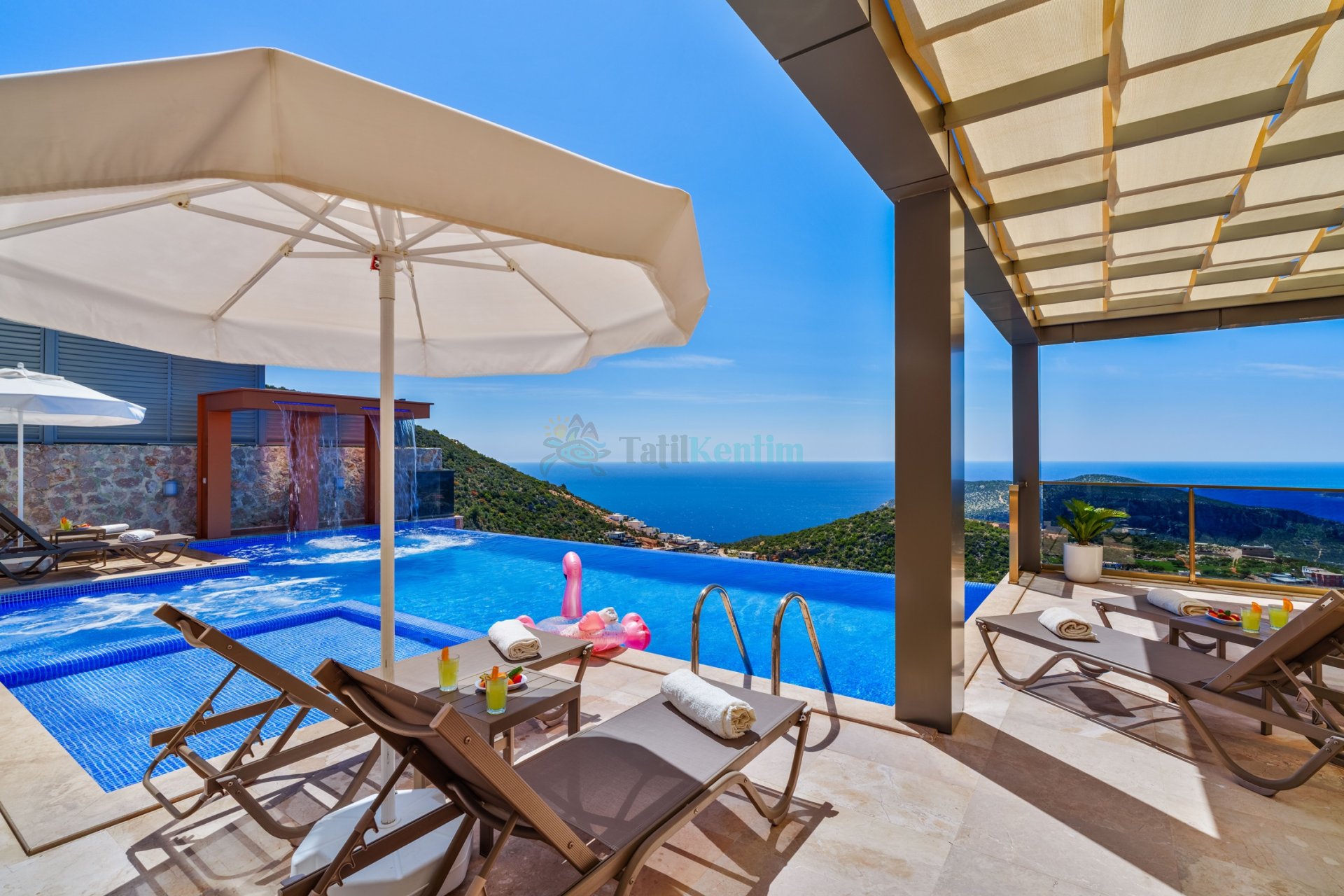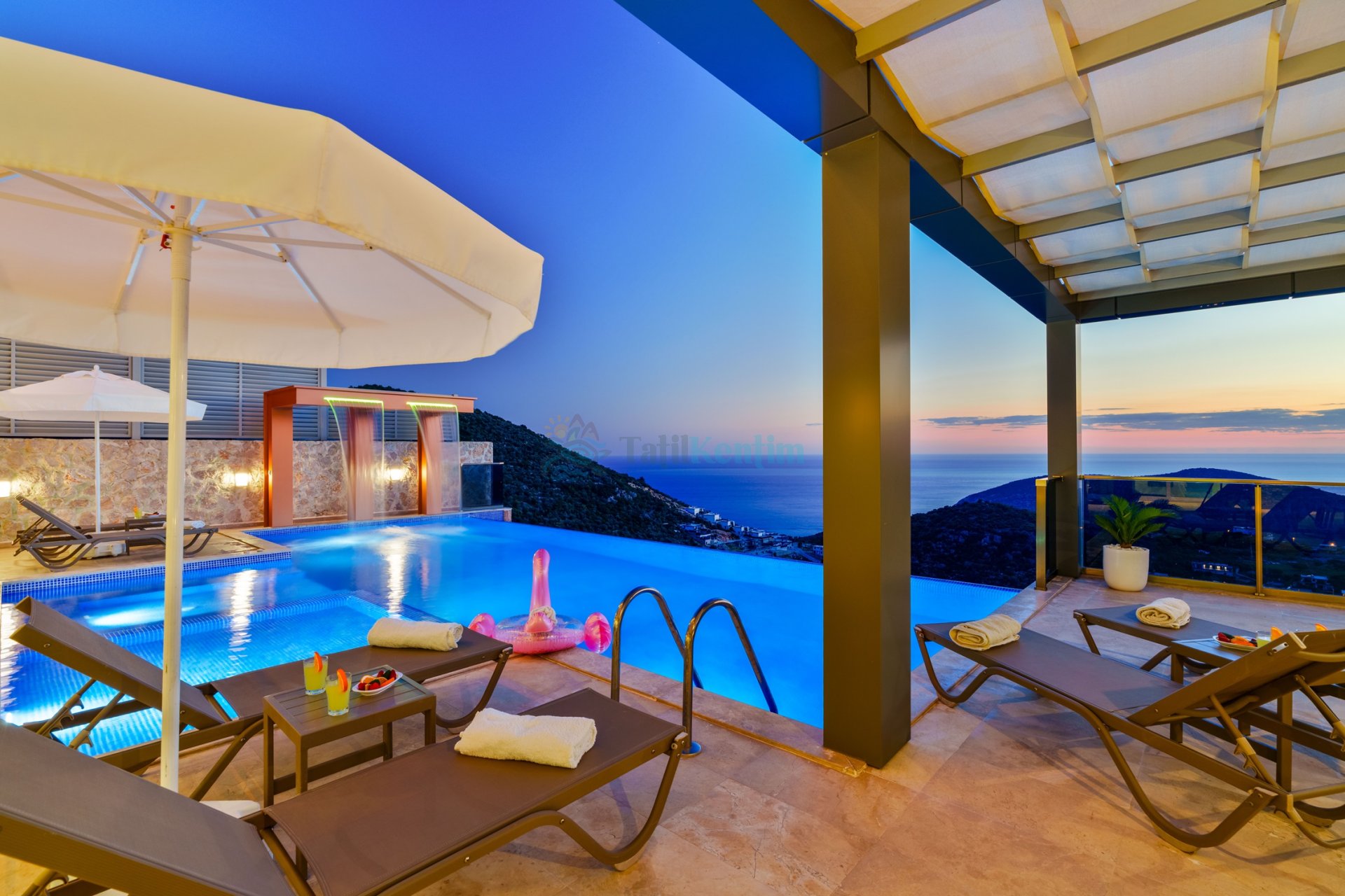 Kaş Kalkan Bölgesinde 10 Kişilik Konaklama Kapasitesine Sahip Sonsuzluk Havuzuna Sahip Kiralık Tatil Villası