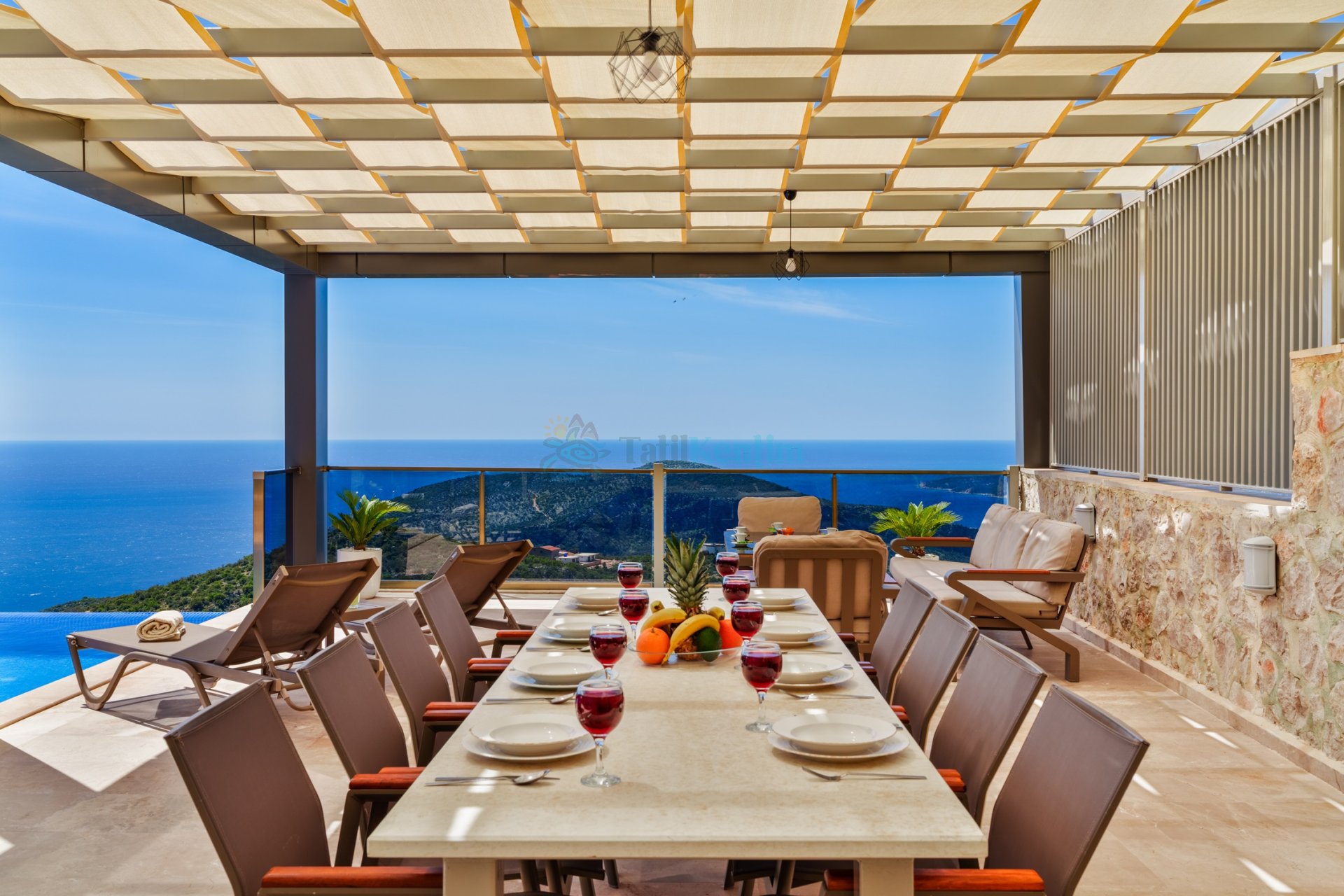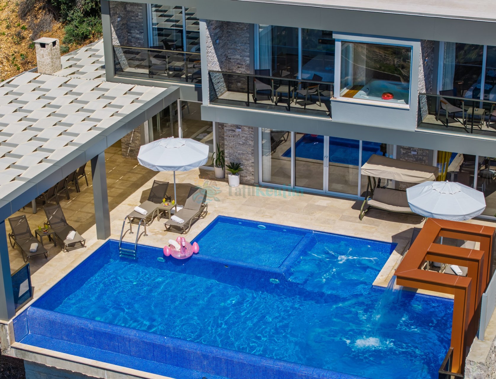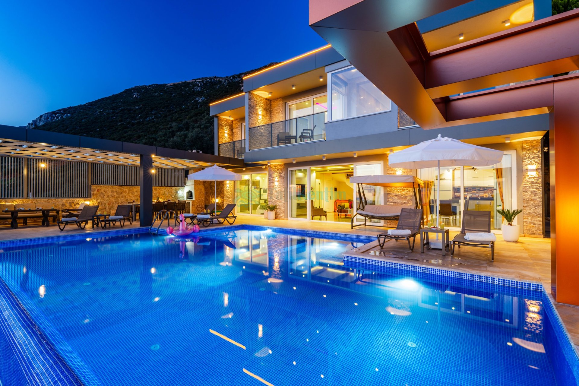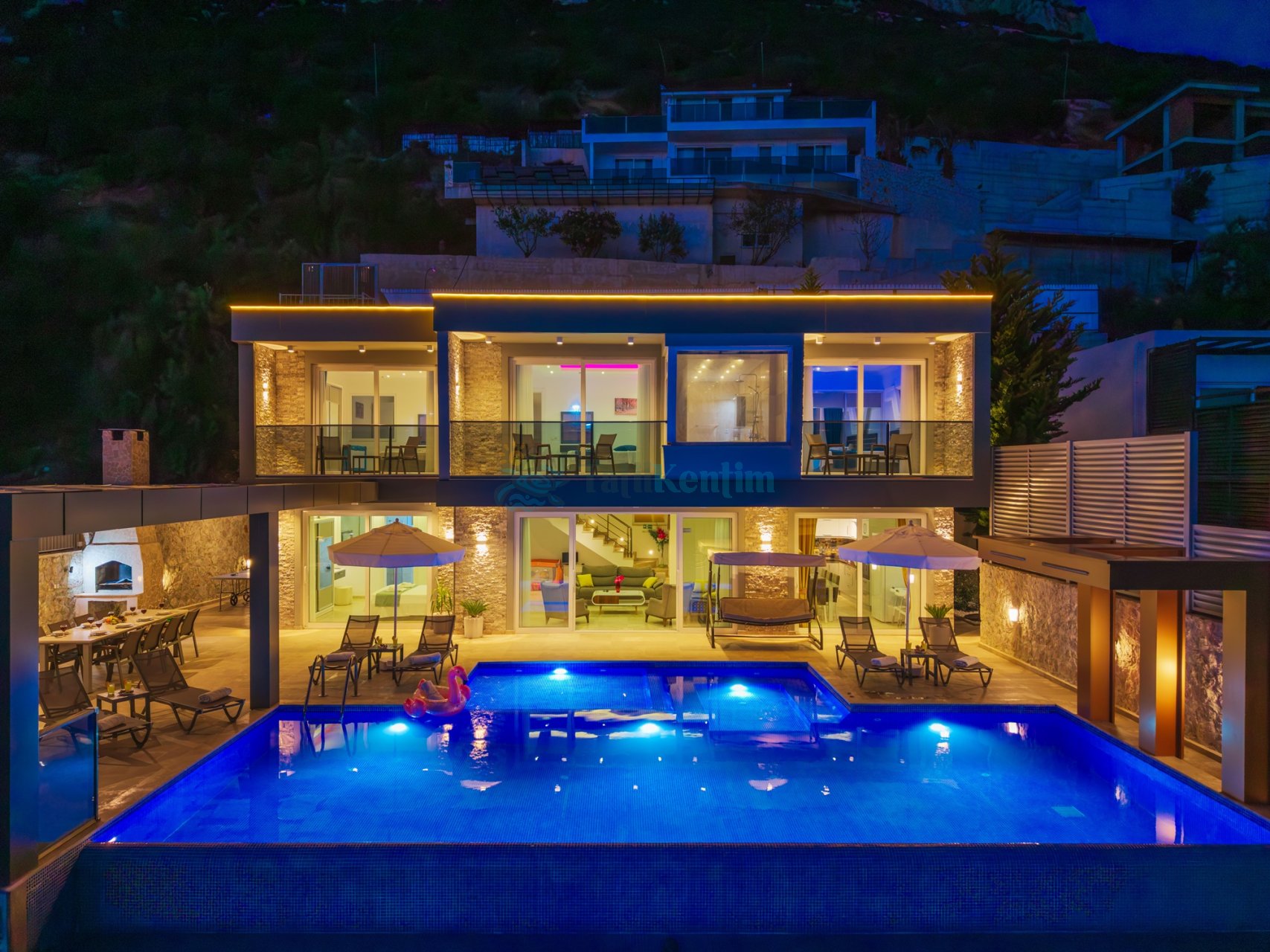 Kaş Kalkan Bölgesinde 10 Kişilik Konaklama Kapasitesine Sahip Sonsuzluk Havuzuna Sahip Kiralık Tatil Villası