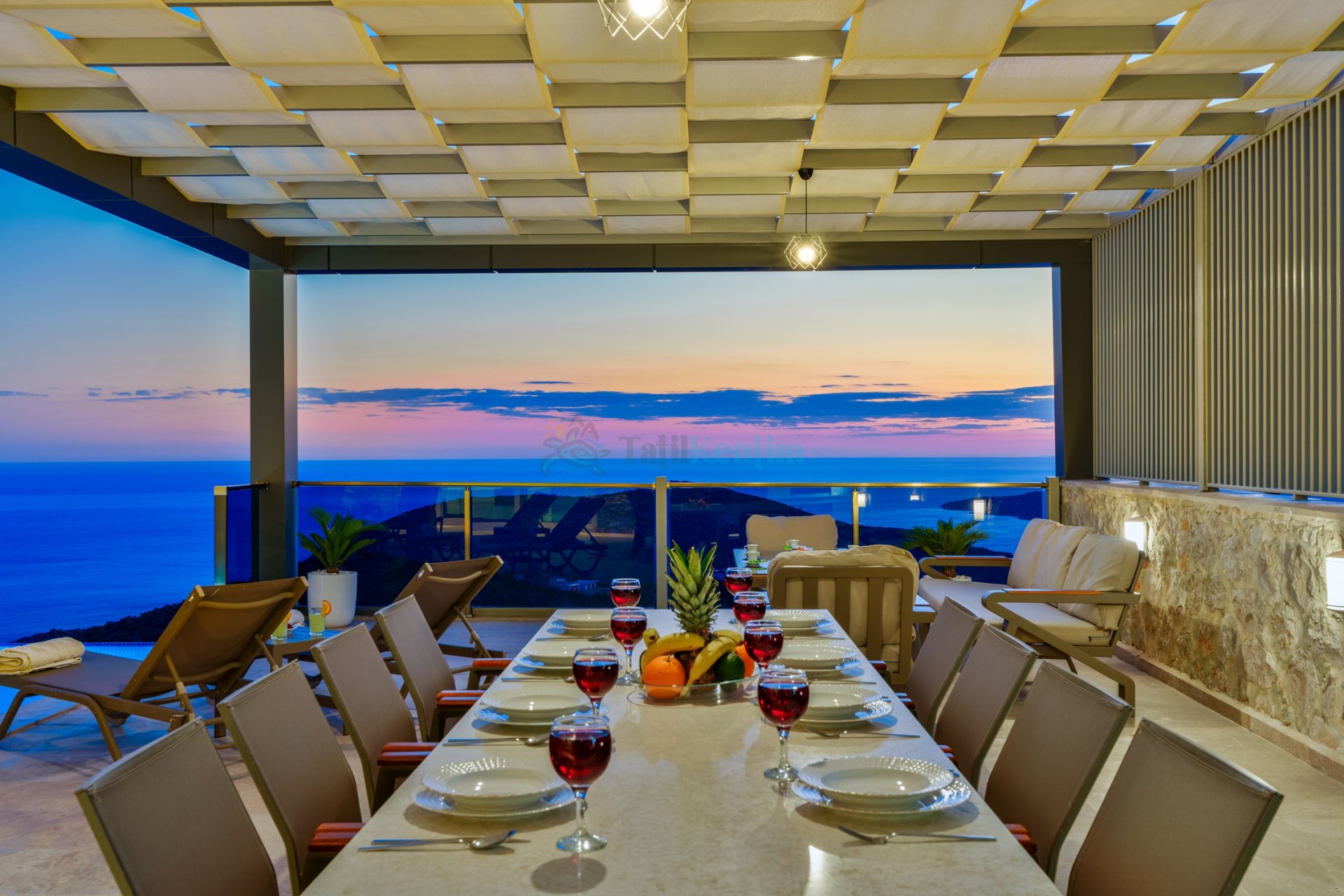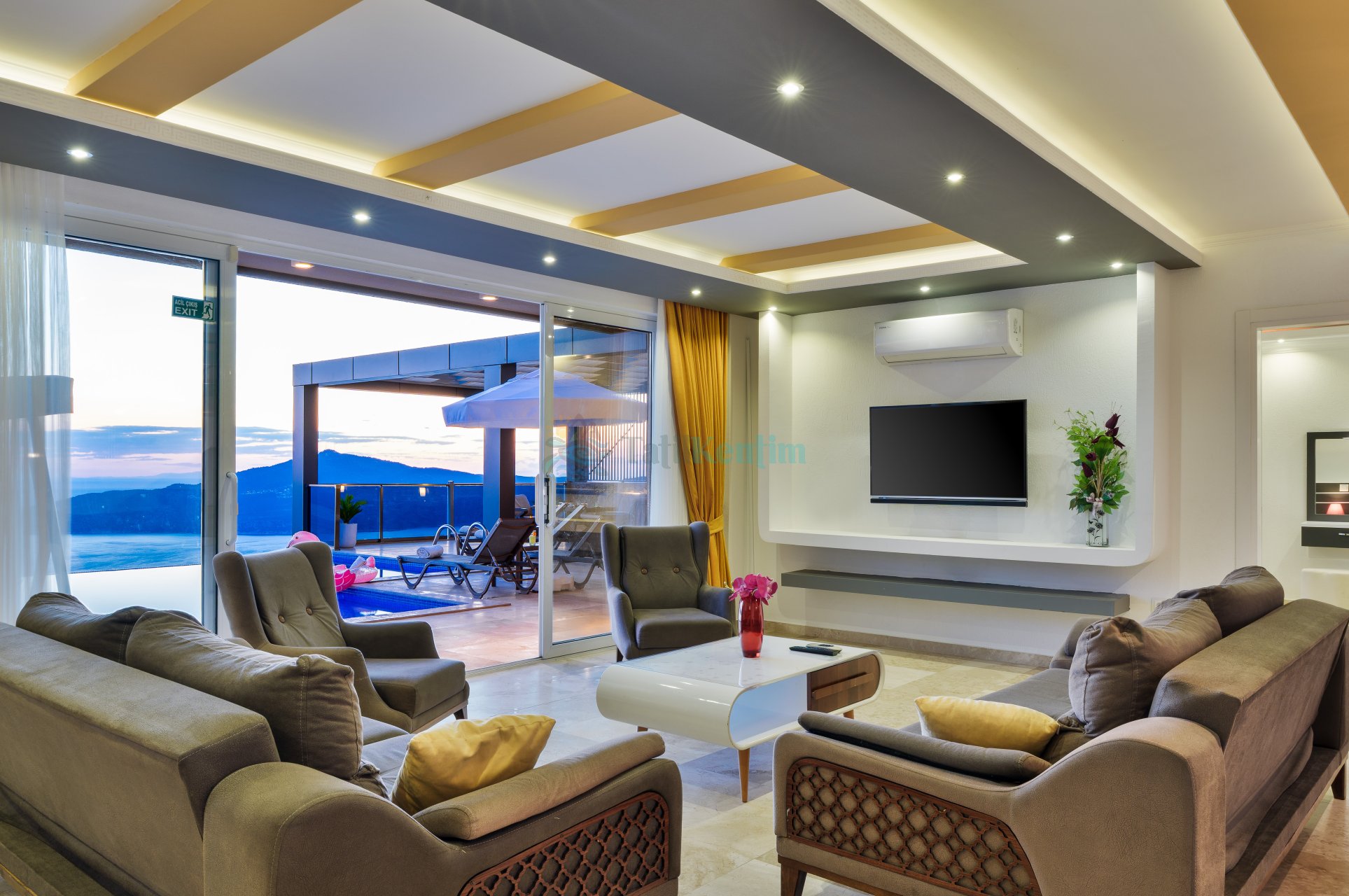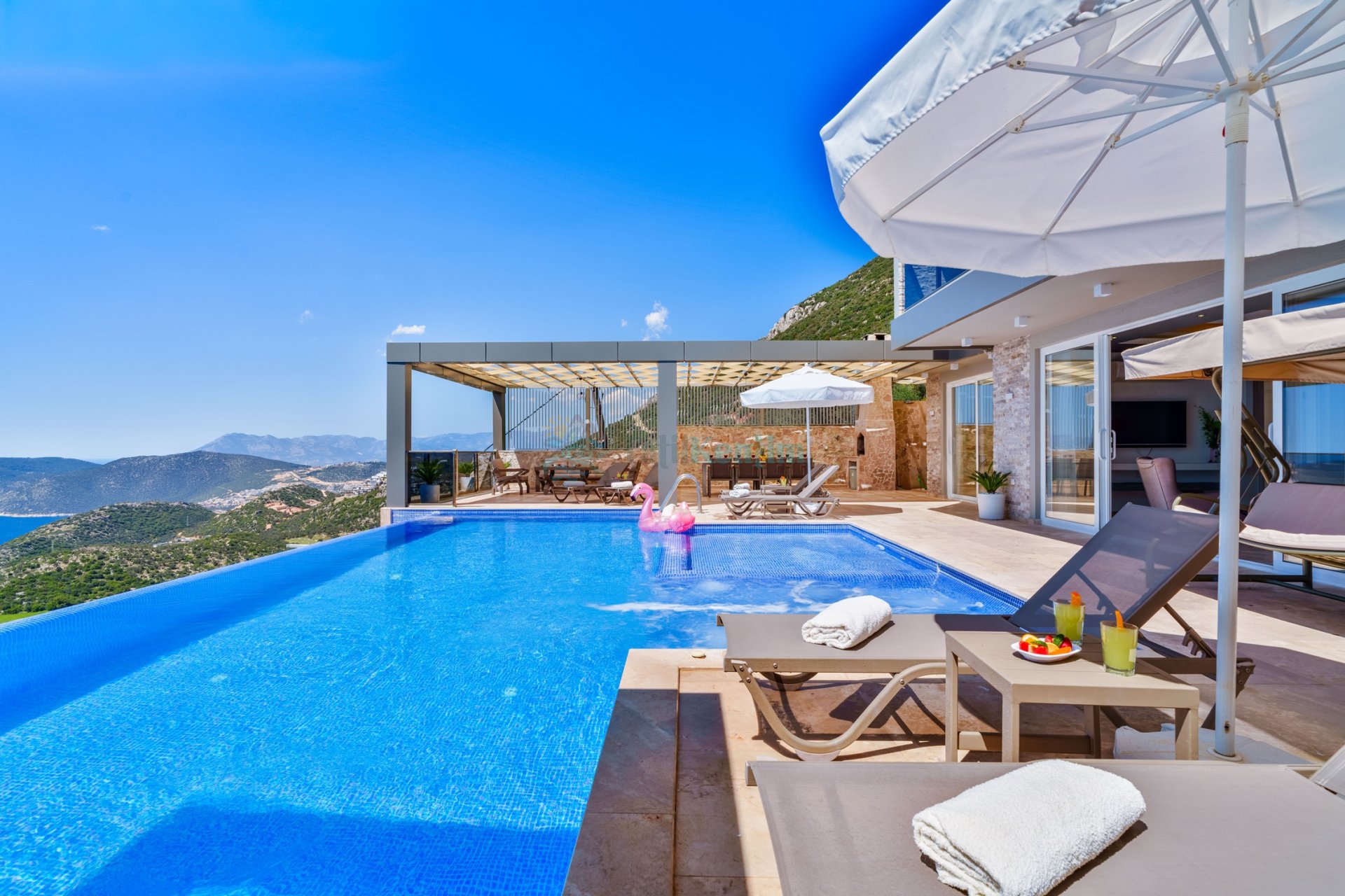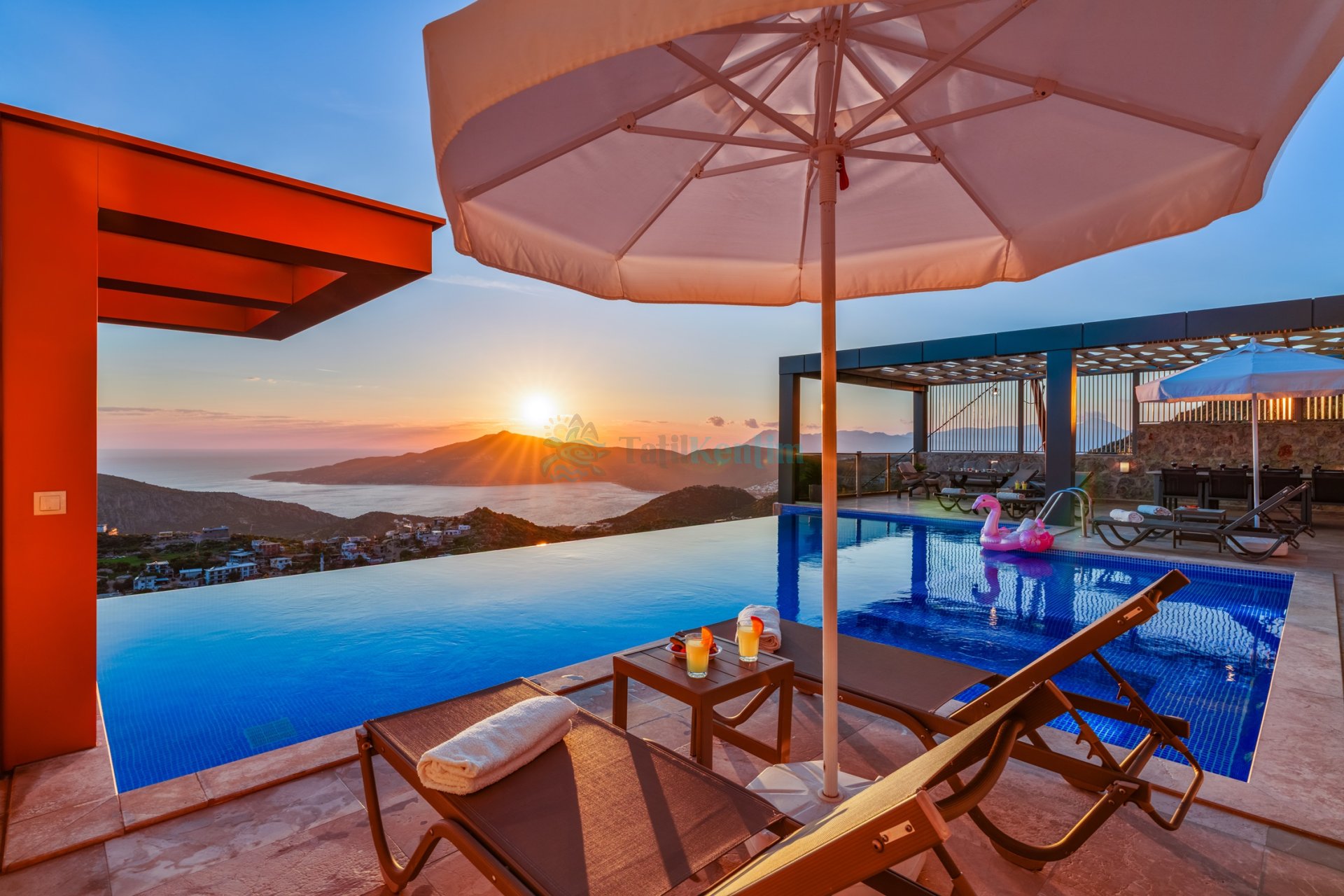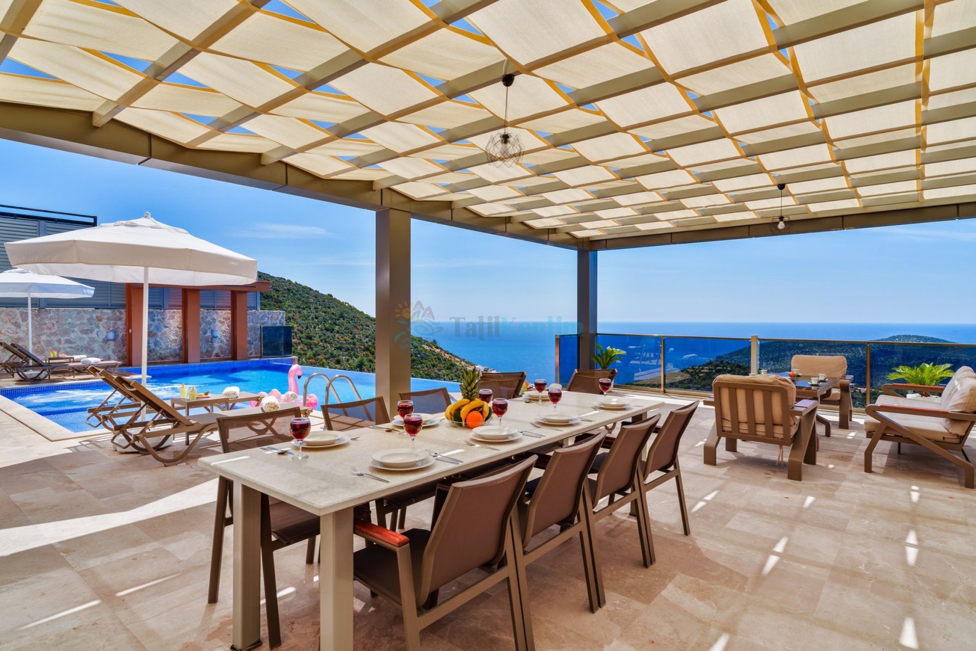 Kaş Kalkan Bölgesinde 10 Kişilik Konaklama Kapasitesine Sahip Sonsuzluk Havuzuna Sahip Kiralık Tatil Villası