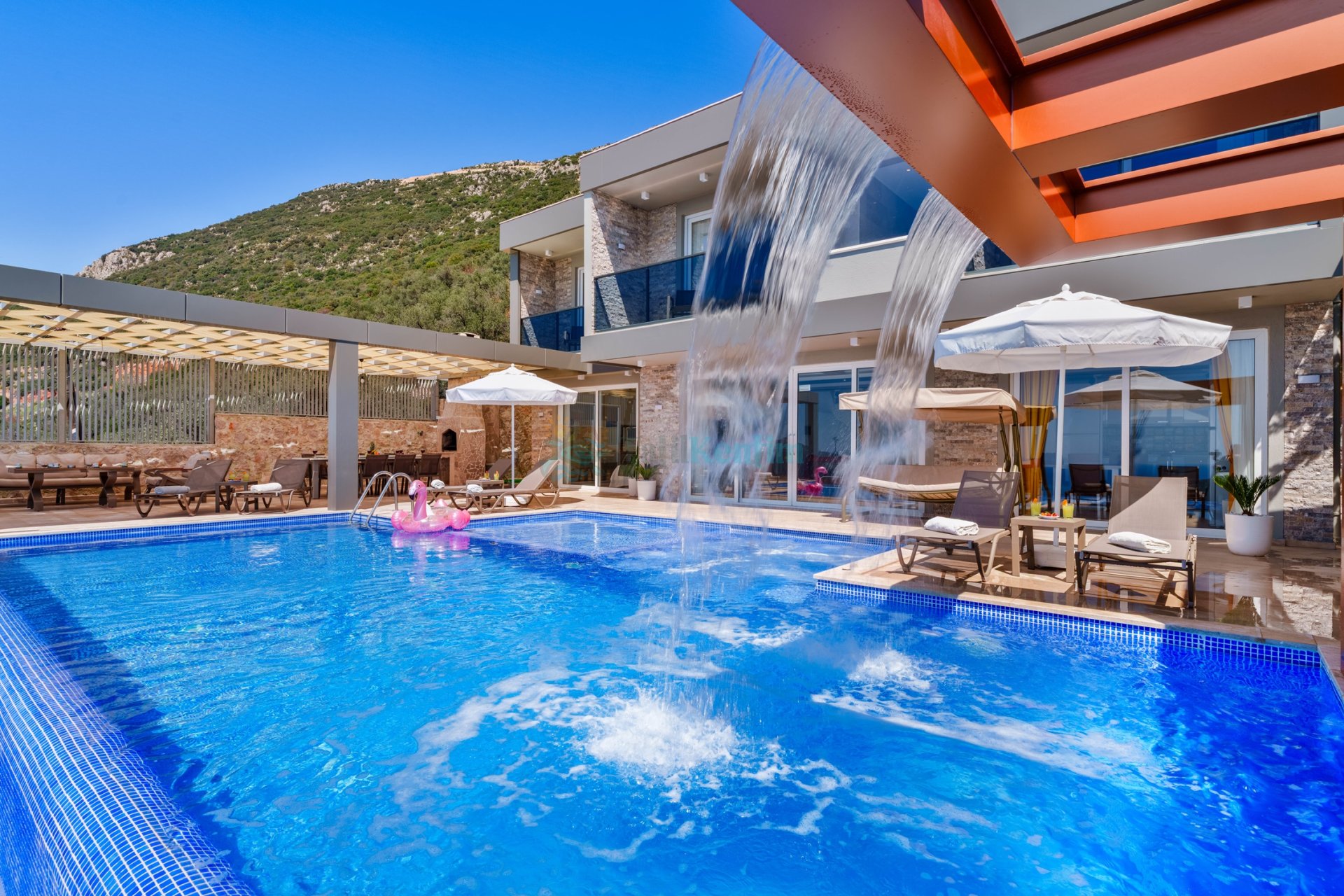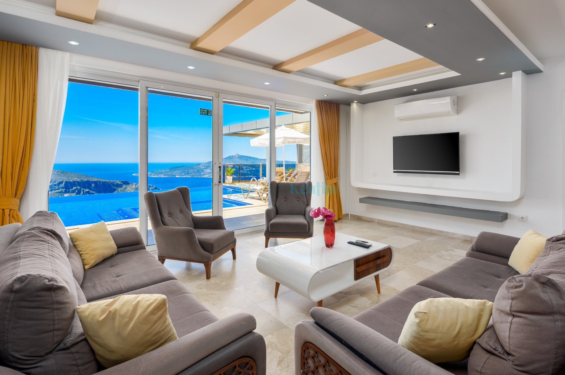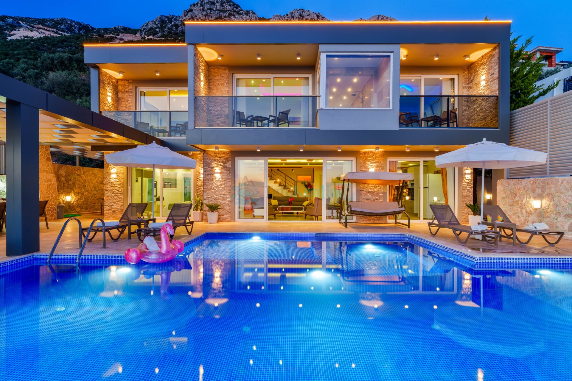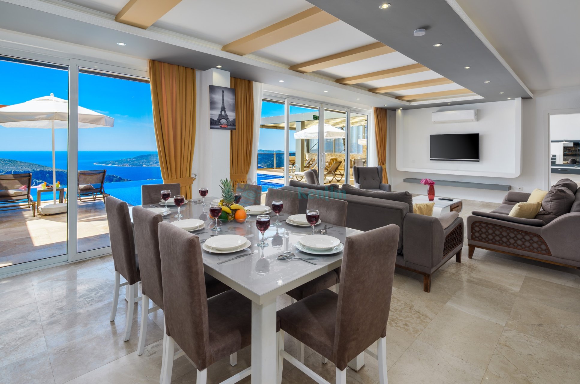 Kaş Kalkan Bölgesinde 10 Kişilik Konaklama Kapasitesine Sahip Sonsuzluk Havuzuna Sahip Kiralık Tatil Villası