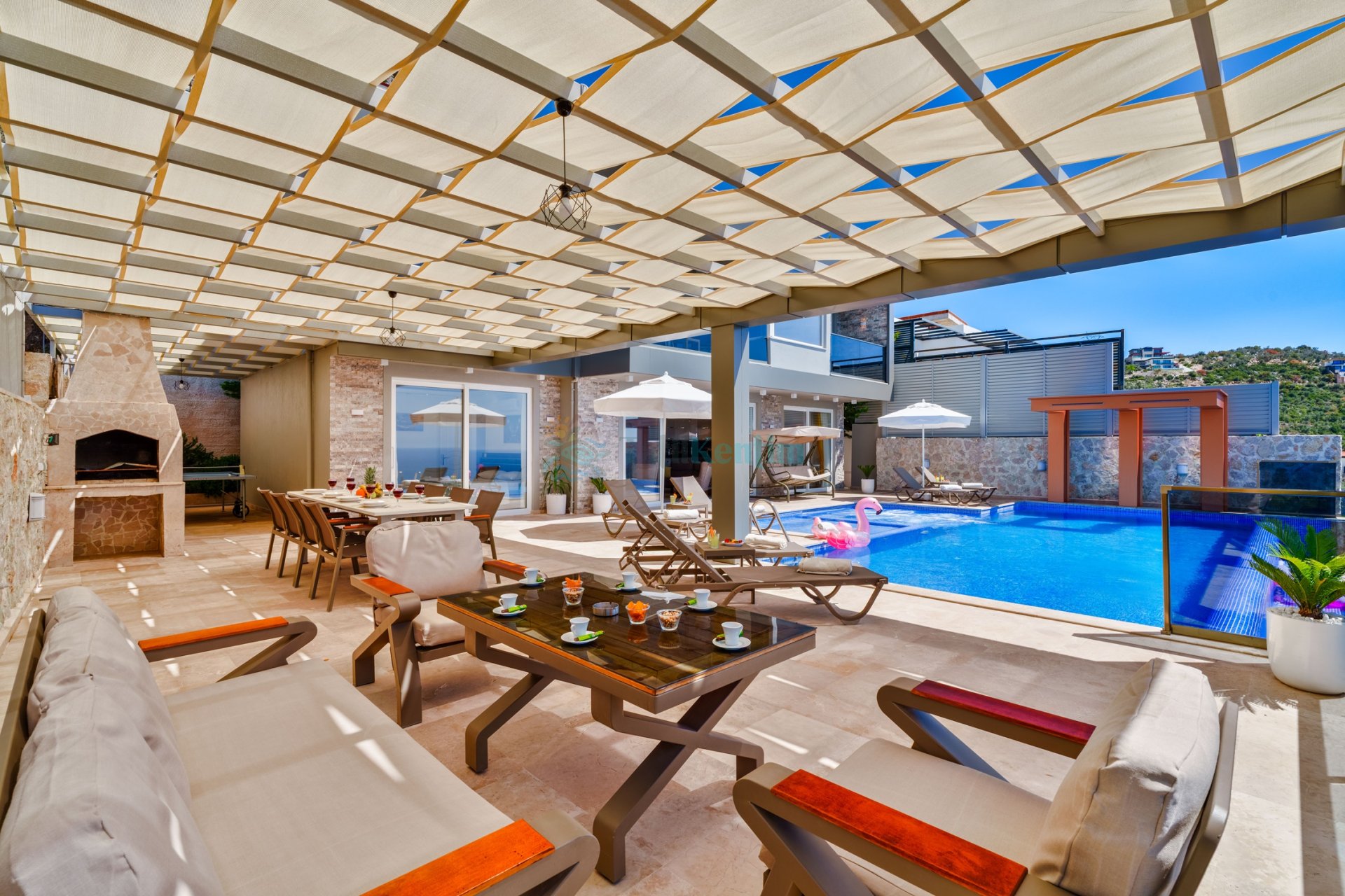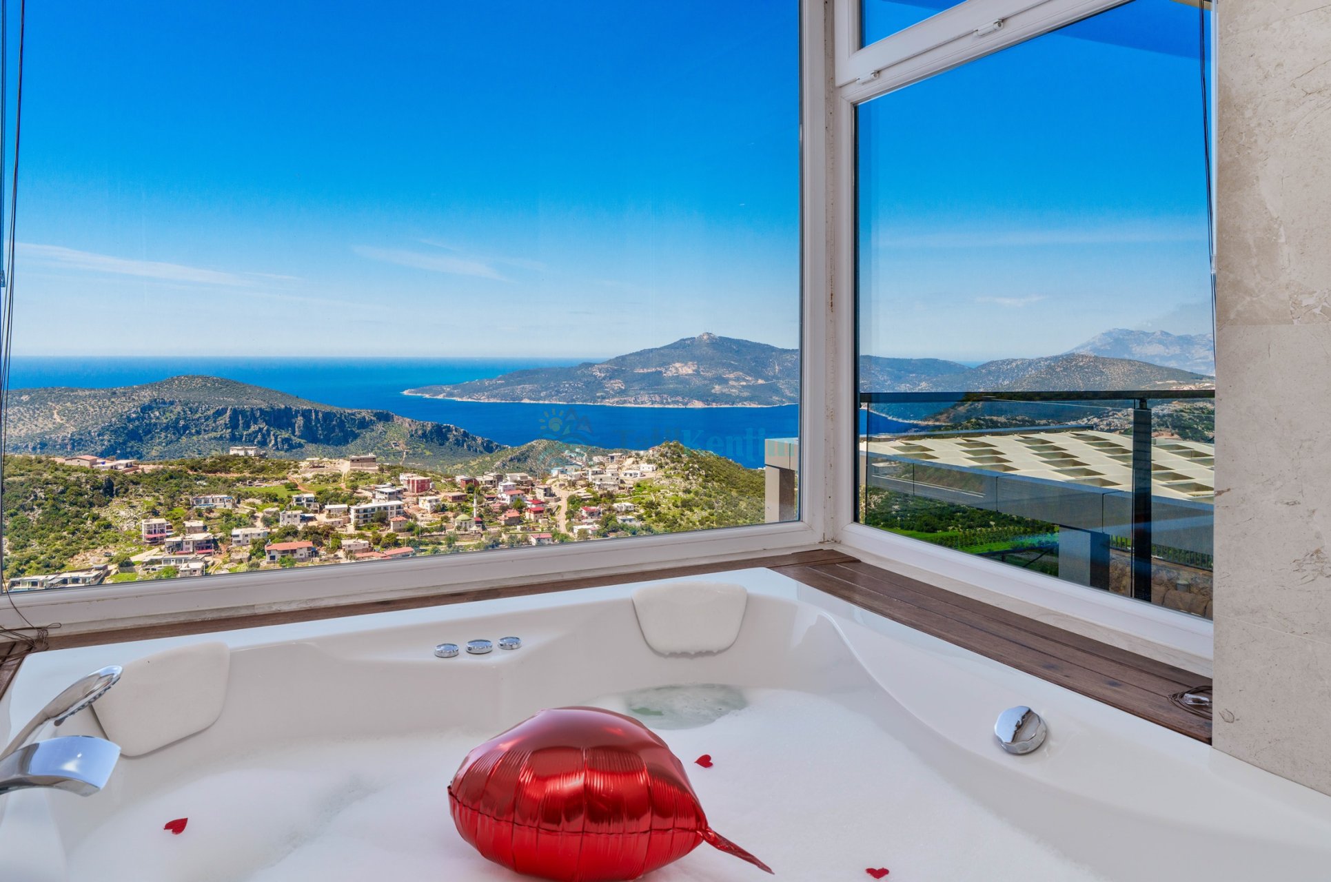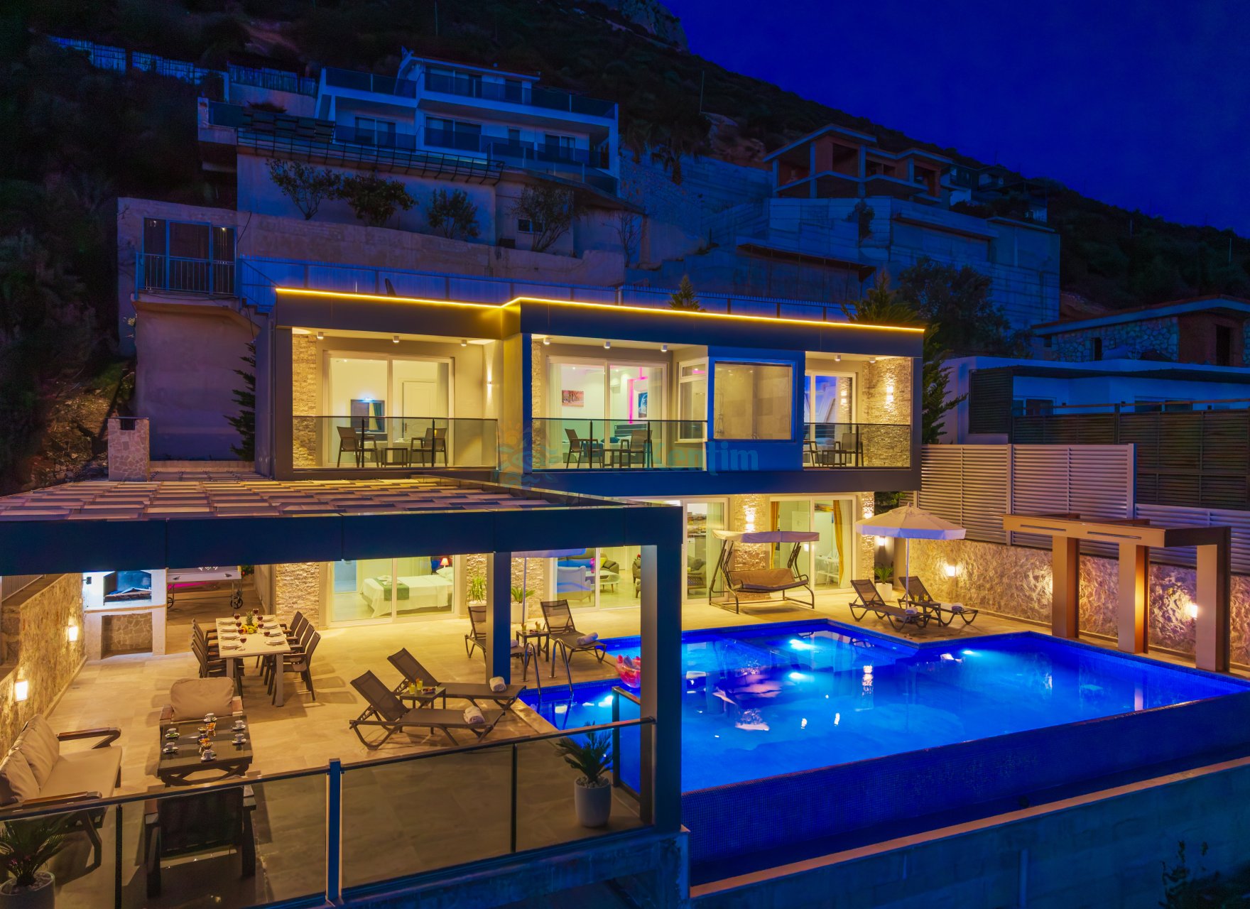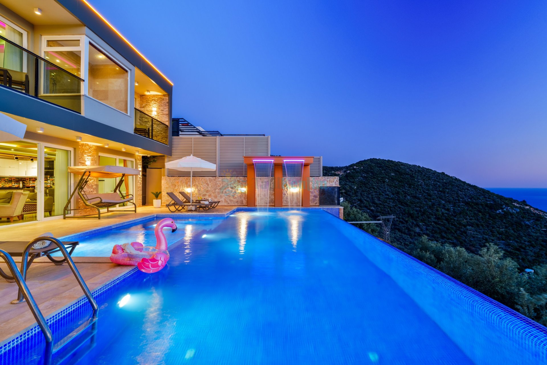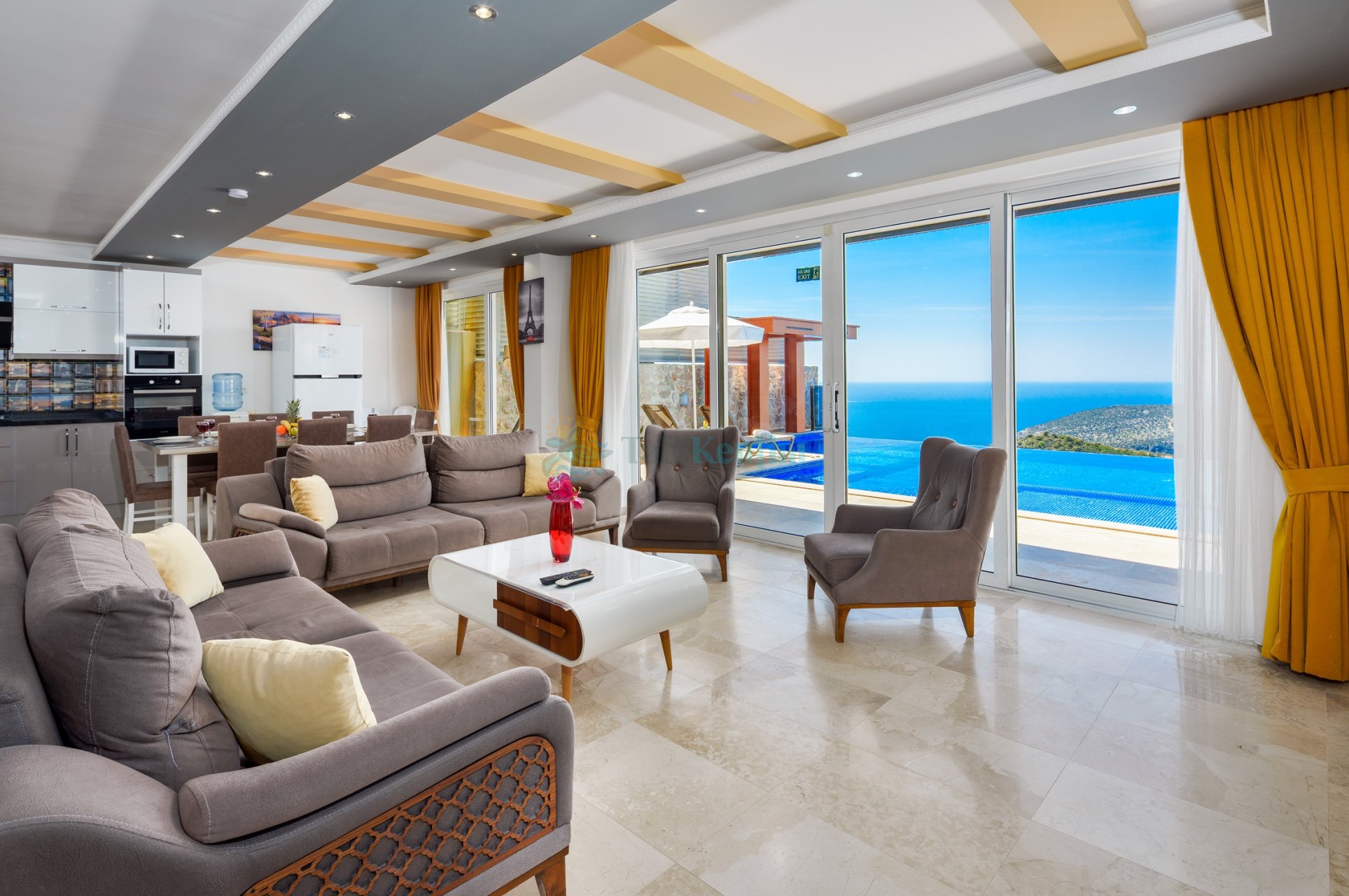 Kaş Kalkan Bölgesinde 10 Kişilik Konaklama Kapasitesine Sahip Sonsuzluk Havuzuna Sahip Kiralık Tatil Villası