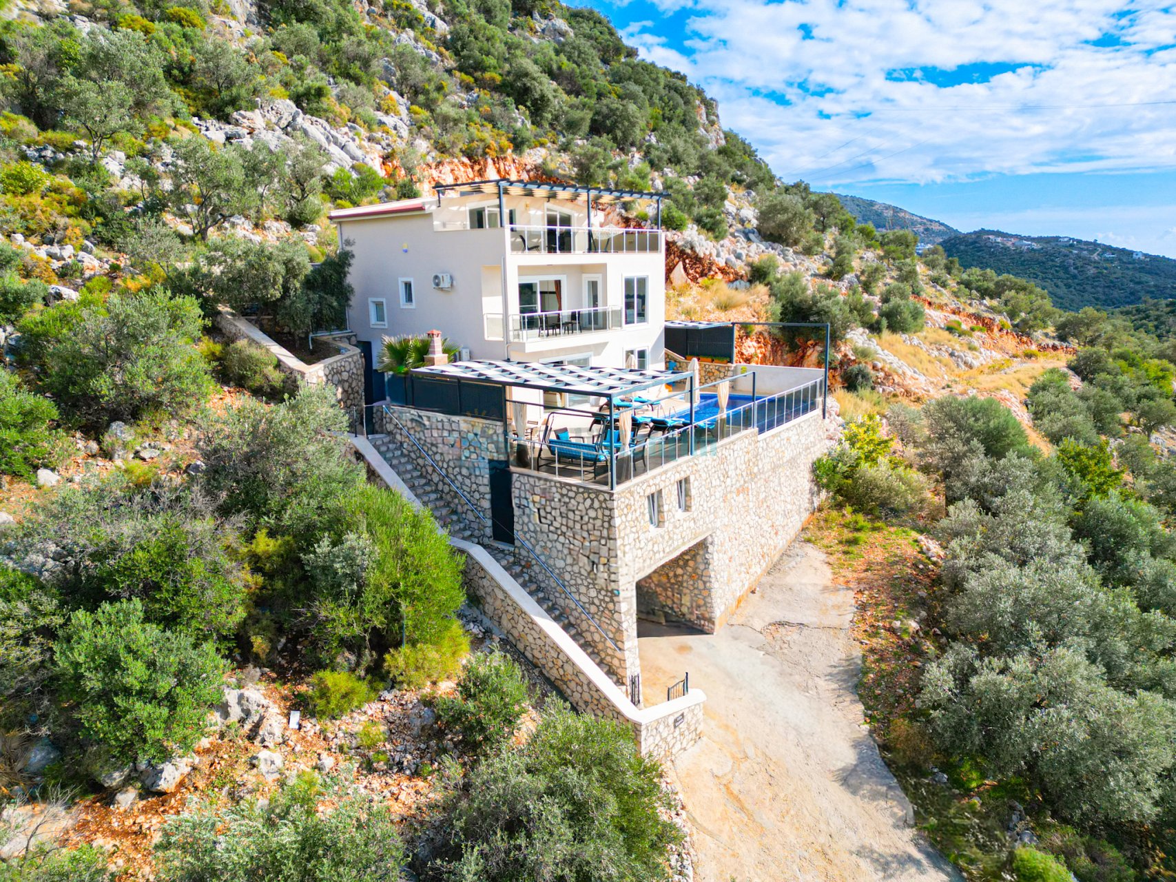 Villa Yamaç, Antalya Kaş Kördere mevkiinde konumlanmış, muazzam doğa manzarasına, terasında deniz manzarasına hakim, 4 yatak odası ile 8 kişilik konaklama kapasitesine sahip, geniş aileler ve kalabalık arkadaş gruplarına hitap eden, keyifli vakit geçirebileceğiniz özel havuzu, çocuk havuzu, jakuzisi ve saunası olup, geniş terasında eğlenceli vakit geçirebileceğiniz masa tenisi, langırt ve çocuklar için mini oyun alanı bulunan, modern yapıda tasarlanmış, şık mimaride dizayn edilmiş rahat ve konforlu bir seçenek sunan kiralık lüks tatil villasıdır.