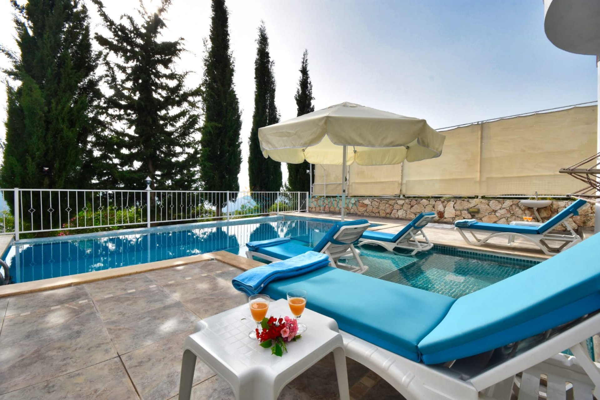 Villa Yonca, Kalkan'ın Akbel bölgesinde konumlanan etkileyici doğa ve deniz manzarasıyla misafirlerine huzur dolu bir tatil deneyimi sunmaktadır. 5 yatak odasıyla toplamda 10 kişilik konaklama kapasitesine sahip olan villamız, kalabalık ve geniş aileler için son derece uygundur. Odalarından birinde keyifli anlar geçirebileceğiniz bir jakuzi mevcuttur. Villamızın özel yüzme havuzu ise jakuzili bir bölüme sahiptir ve dışarıdan görünmeyecek şekilde korunaklıdır. Bu özelliği sayesinde muhafazakar aileler için de gönül rahatlığıyla tercih edilebilecek bir tatil ortamı sunar.