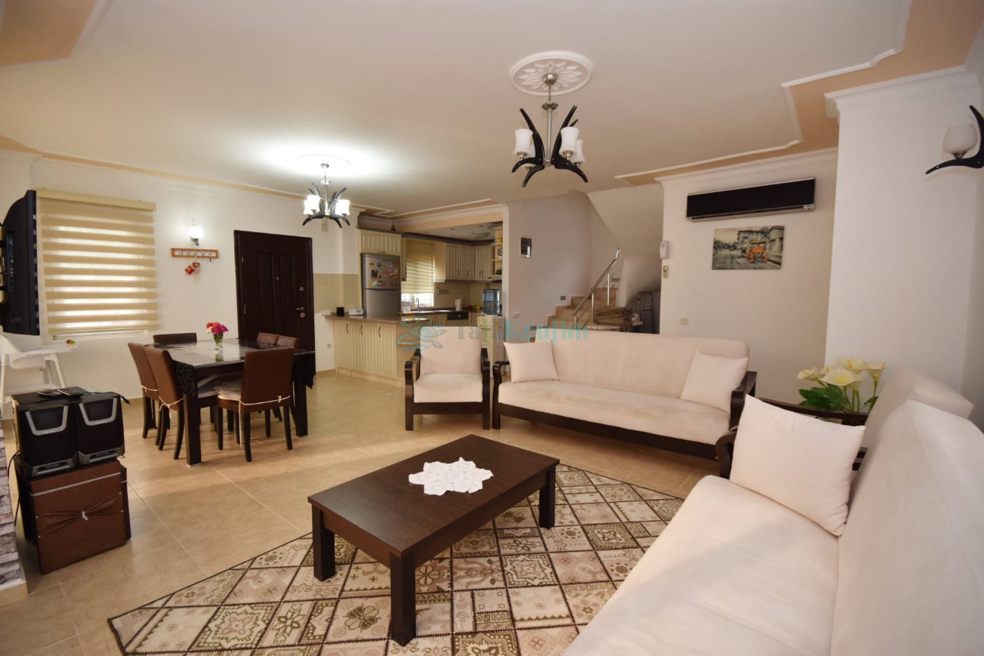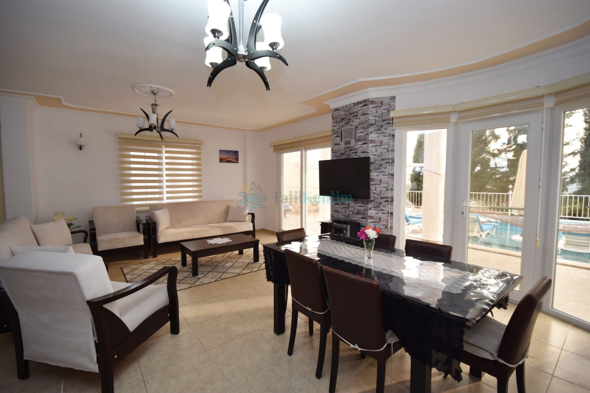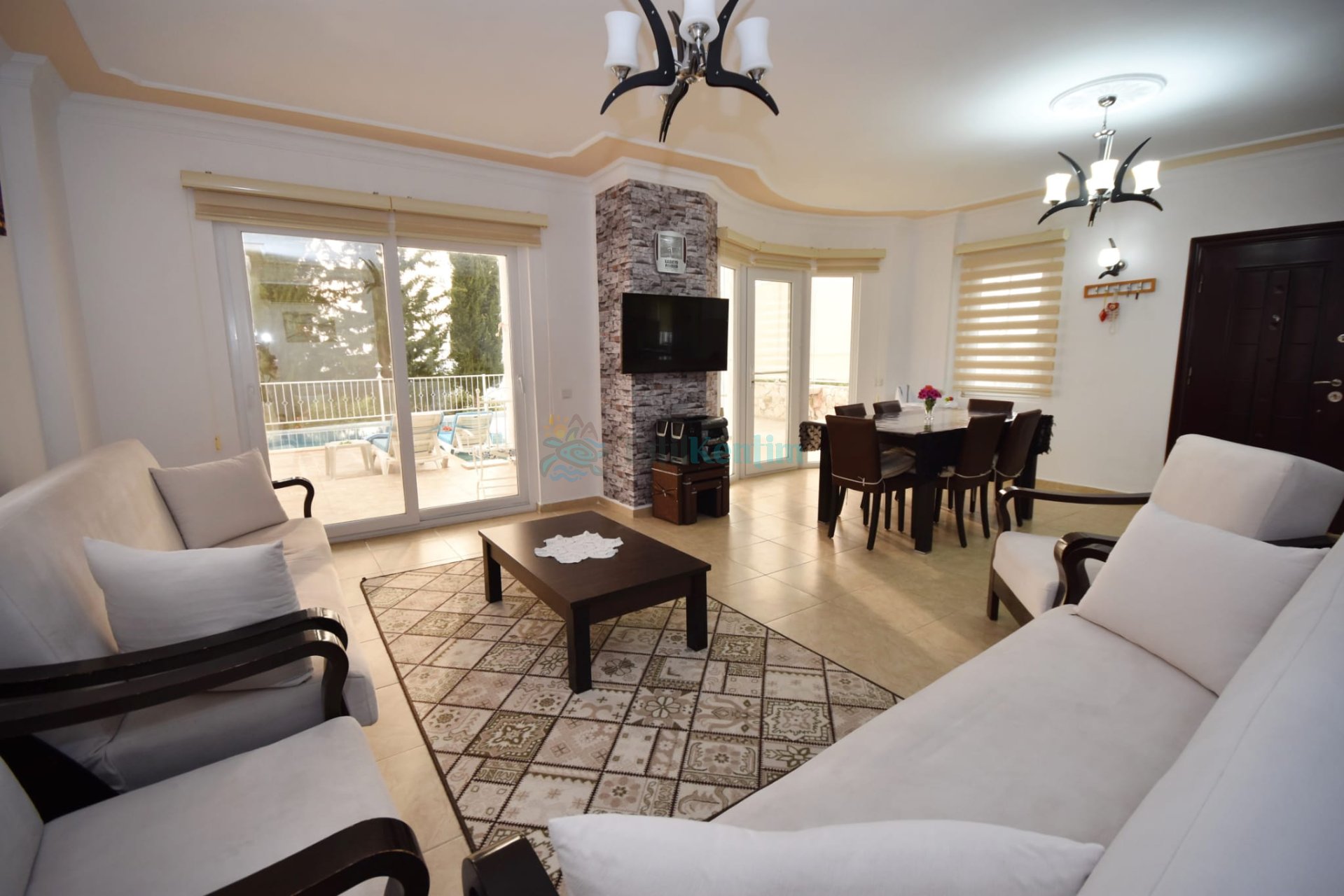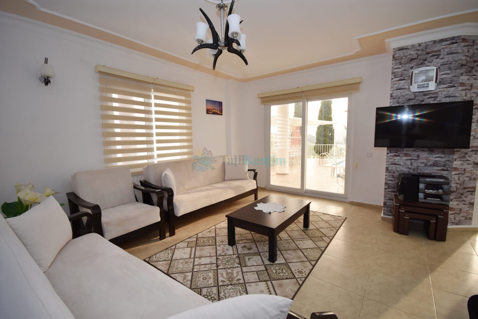 Salon: Villamızın salonunda, oturma grubu, klima, sehpa, TV, uydu alıcı, kablosuz modem yer almaktadır.