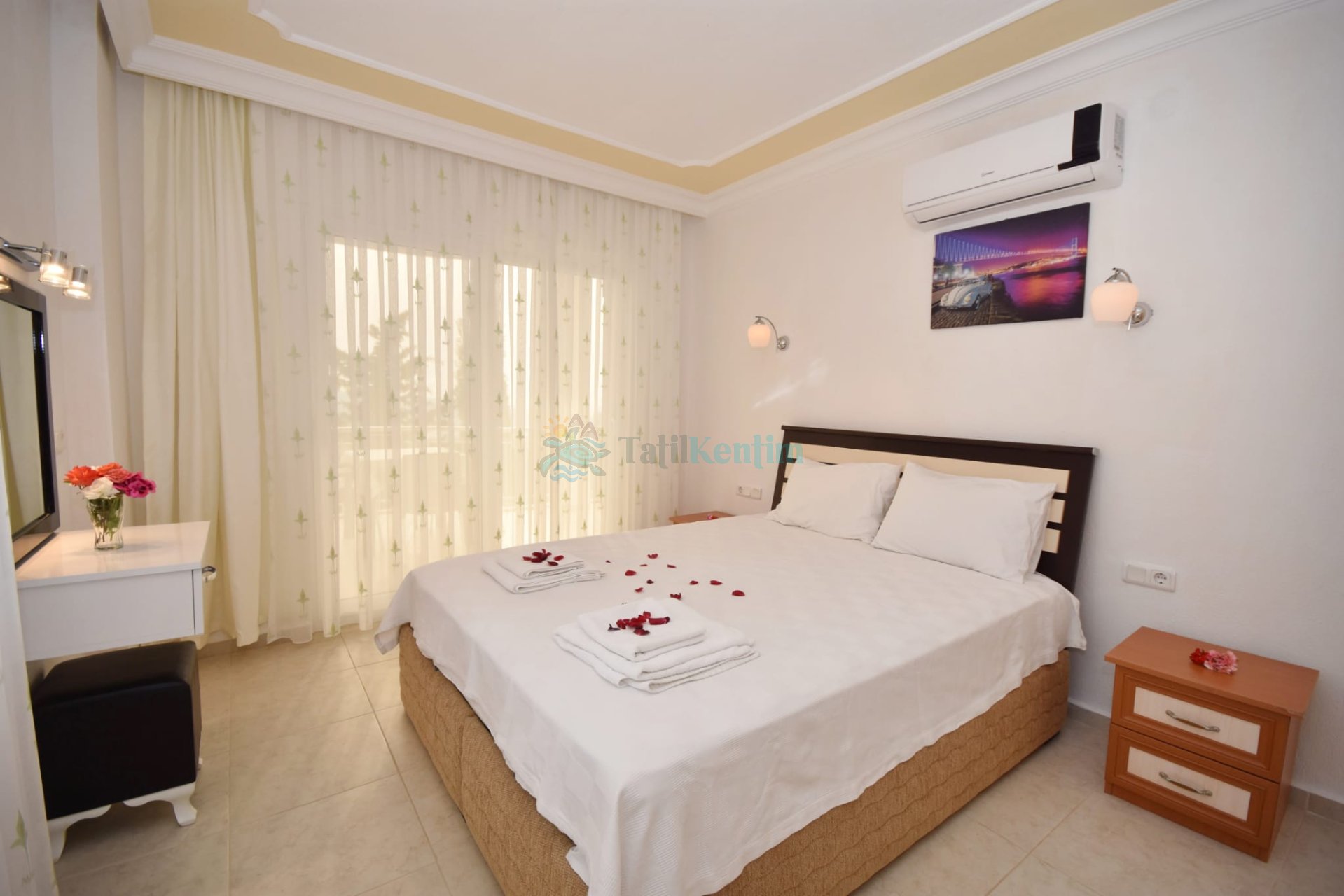 3.Yatak Odası: 1 adet çift kişilik yatak, klima, komodin, elbise dolabı , banyo ve tuvalet bulunmaktadır.