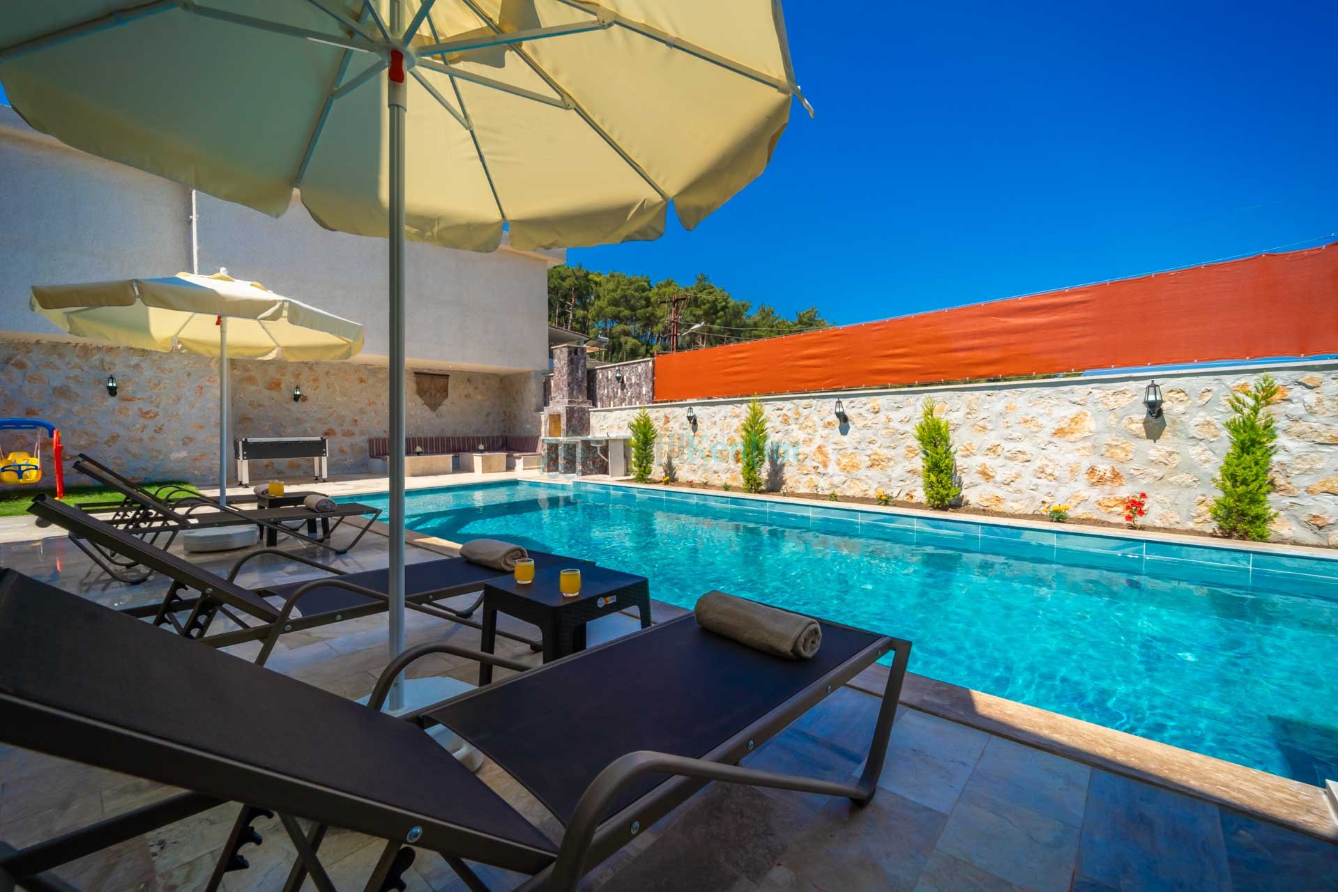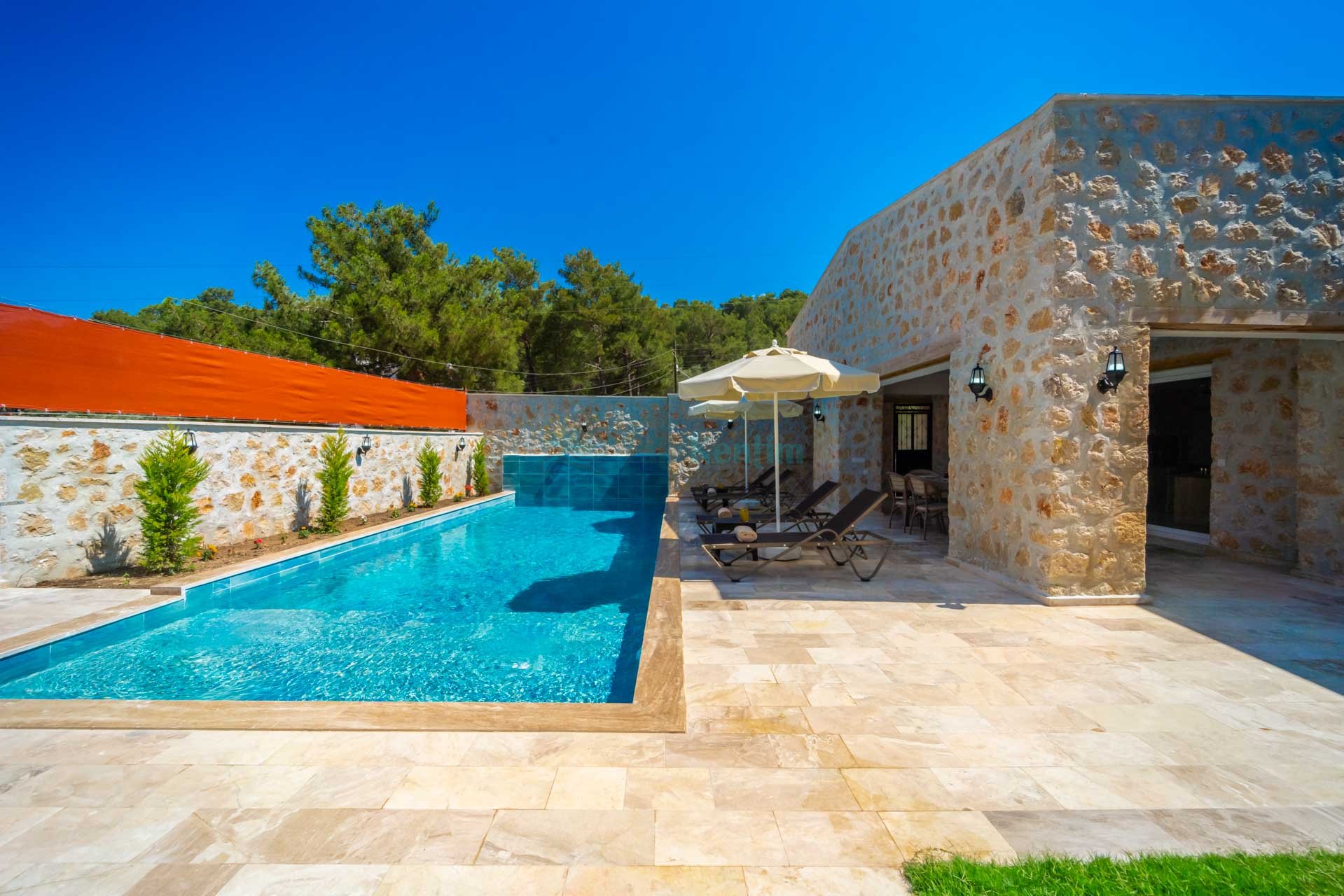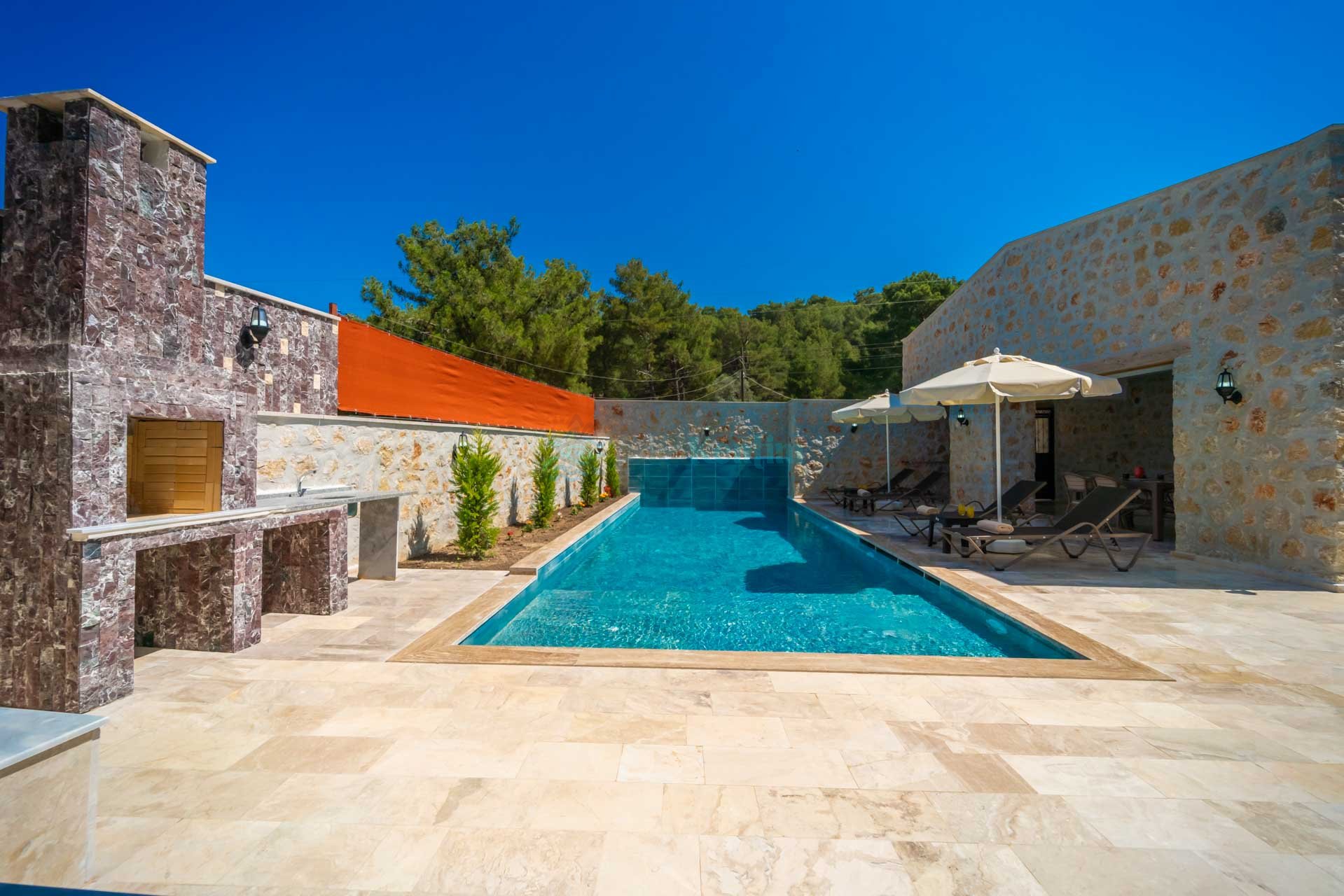 Villa Belinay, Deniz Manzaralı, Özel Havuzlu, Kısmi Korunaklı, 4 Kişilik Kiralık Tatil Villası.