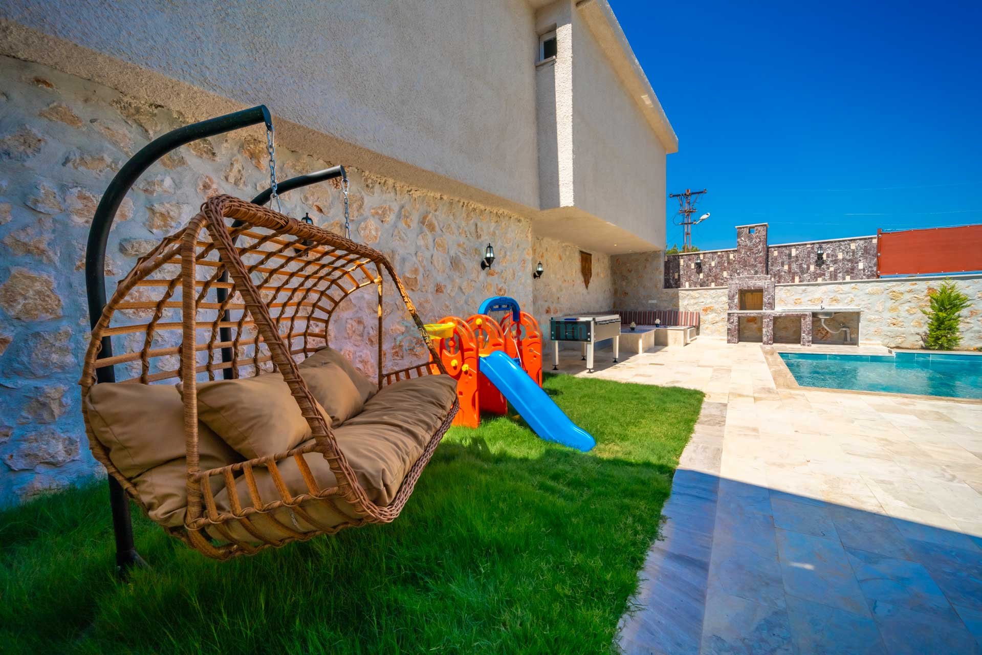 Villa Zeyno 6, Antalya Kaş Kalkan'ın Akbel mevkiinde konumlanmış, 2 yatak odası ile 4 kişilik konaklama kapasitesine sahip, çekirdek ailelere ve balayı çiftlerine hitap eden kiralık tatil villasıdır. Villamızda, bütün bir yılın stresini atabileceğiniz özel havuzu ve jakuzisi mevcuttur. Geniş terasında tatilin tadını çıkarabileceğiniz barbeküsü, köşk alanı ve eğlenceli vakit geçirebileceğiniz langırt ve çocuklar için mini oyun alanı bulunmaktadır. Villa Zeyno 6, korunaklı taş yapıda tasarlanmış, modern ve şık dizayn edilmiş, rahat ve konforlu bir tatil seçeneği sunmaktadır.