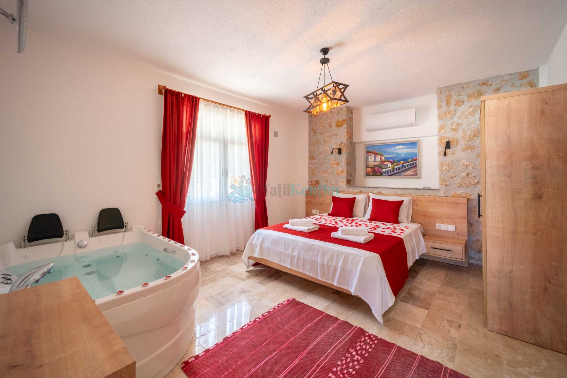 Yatak odası içerisinde, 1 adet çift kişilik yatak, klima, elbise dolabı, komodin, makyaj masası, jakuzi, banyo ve tuvalet yer almaktadır.