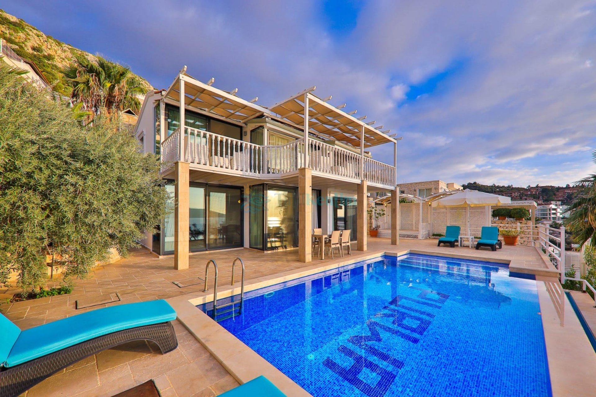 Kaş Kalkan'da Merkeze Yakın Deniz Manzaralı 5 Yatak Odalı 10 kişilik Özel Havuzlu Lüks Kiralik Tatil Villası