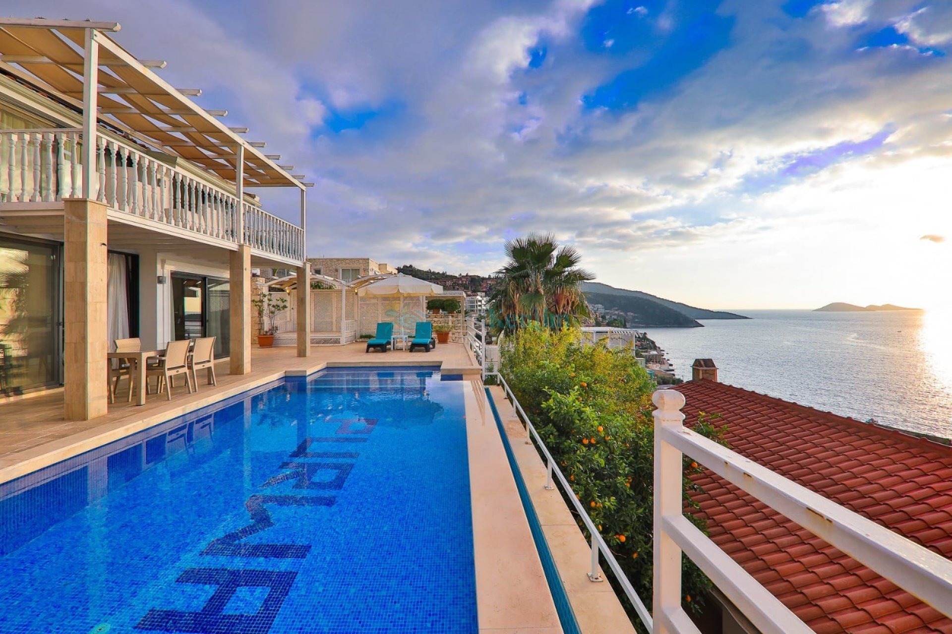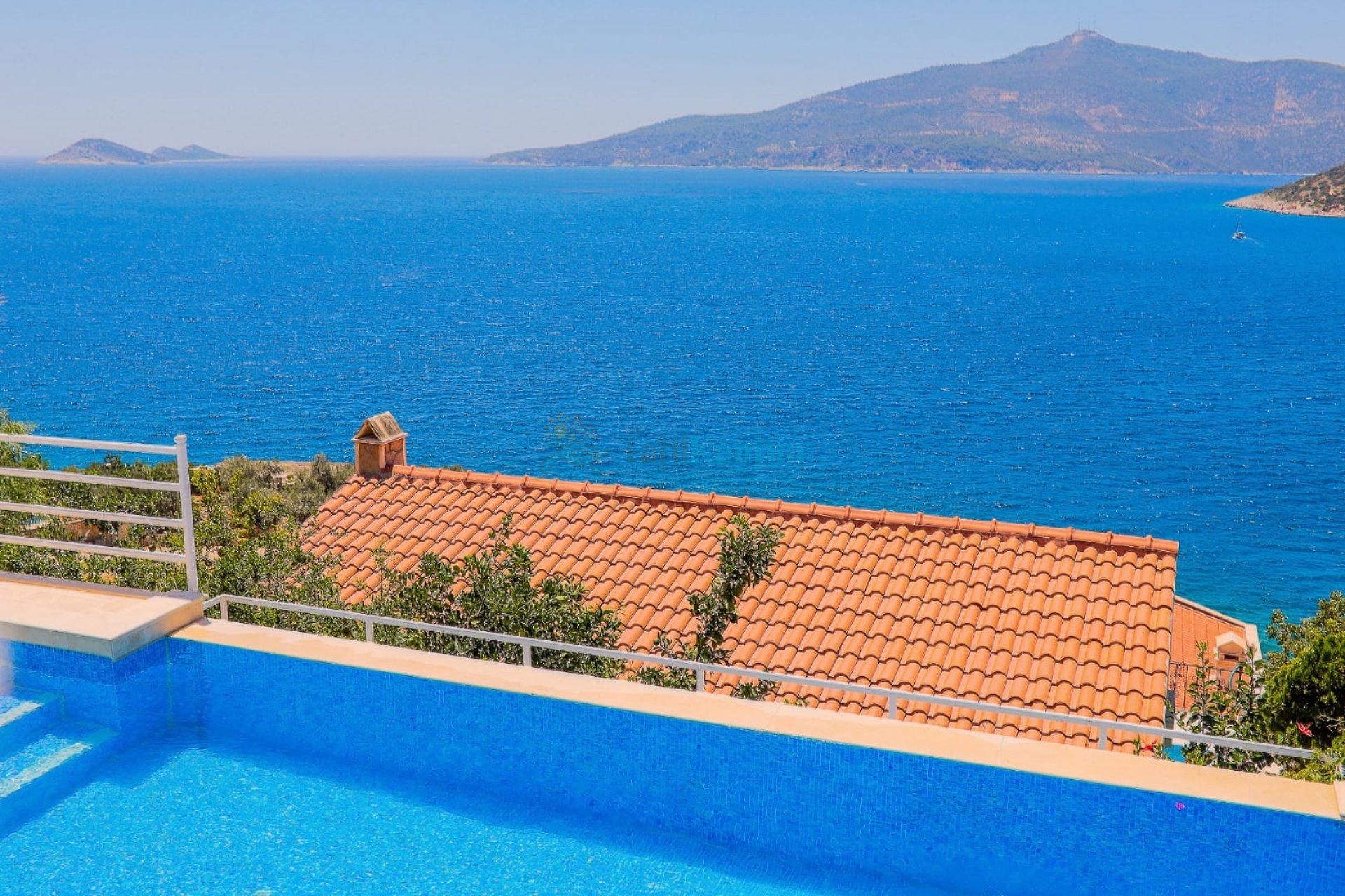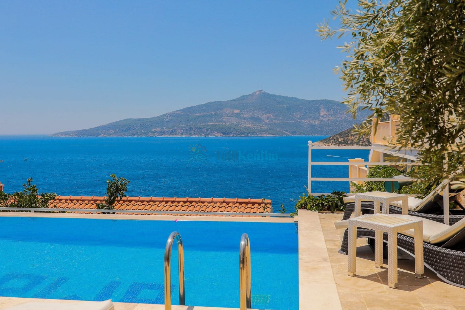 Kaş Kalkan Bölgesinde 10 Kişilik Konaklama Kapasitesine Sahip Sonsuzluk Havuzuna Sahip Kiralık Tatil Villası