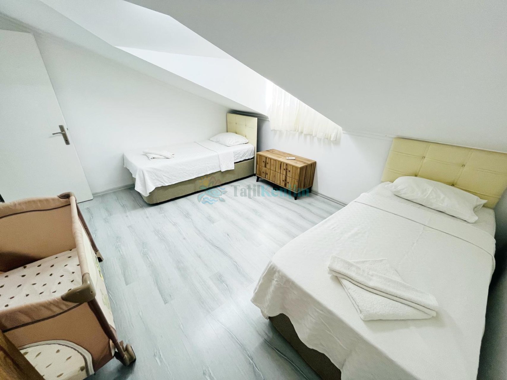 3.Yatak Odası: 2 adet tek kişilik yatak, klima, makyaj masası, komodin, elbise dolabı, banyo ve tuvalet ortak kullanımdır.