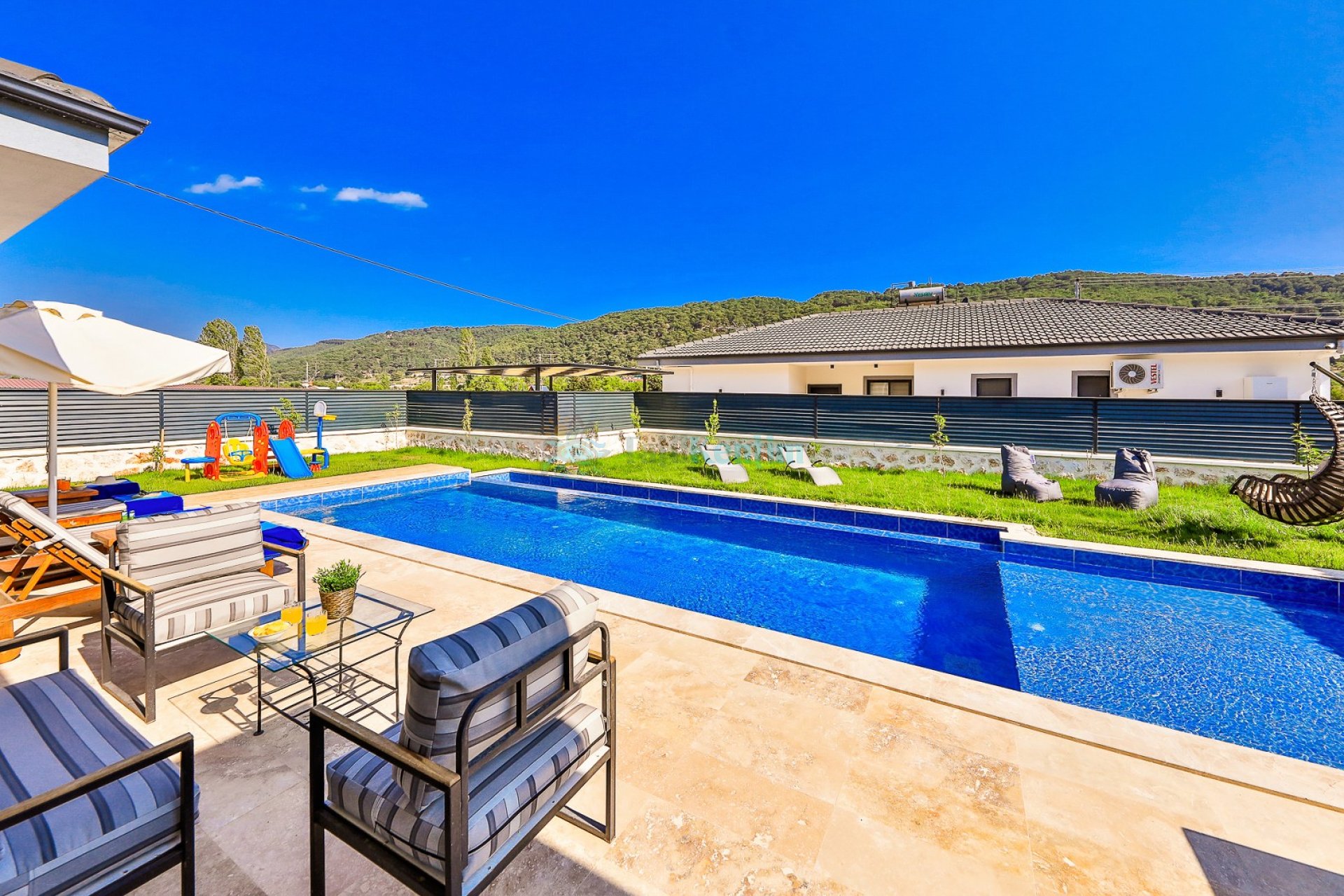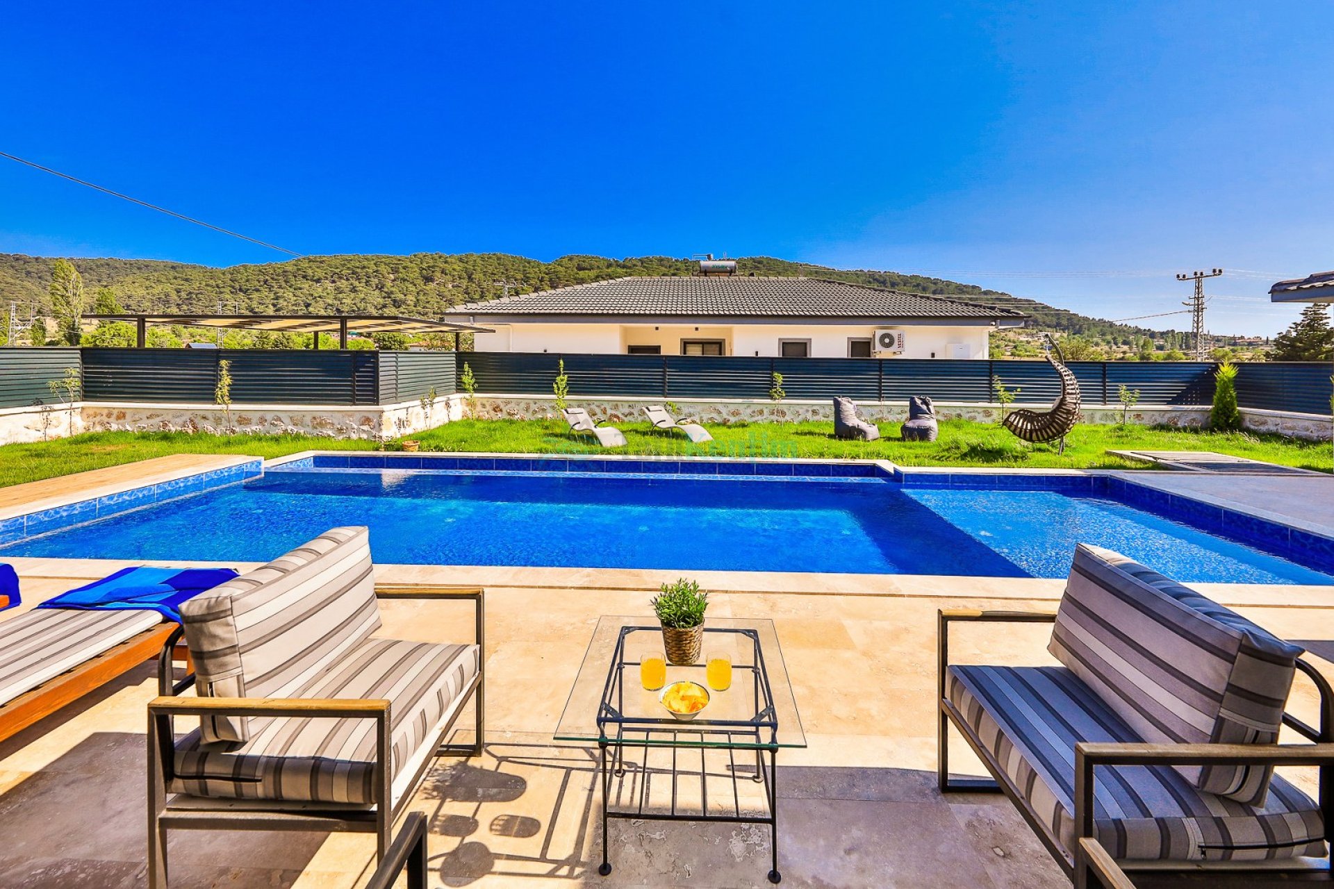 Villa Zümrüt, Kalkan sarıbelen mevkiinde konumlanmış, 4 kişilik kapasiteye sahip özel bir tatil villasıdır. Villada 2 yatak odası 2 banyo bulunmakta olup, aileler ve çiftler için ideal bir konaklama imkanı sağlar. Villanın bahçesinde misafirlerin keyifle vakit geçirebileceği salıncak, yemek masası ve eğlenceli zamanlar için masa tenisi yer almaktadır. Ayrıca çocuk misafirler düşünülerek hazırlanmış mini oyun alanı, aileler için güvenli ve eğlenceli bir ortam sunar. Villanın özel yüzme havuzu tamamen size aittir. Yatak odalarından birinde bulunan jakuzi, tatilinize ekstra rahatlık ve ayrıcalık katar. Villa Zümrüt korunaklı yapıda tasarlanmış, modern ve şık mimaride dizayn edilmiş rahat ve konforlu bir tatil seçeneği sunmaktadır.